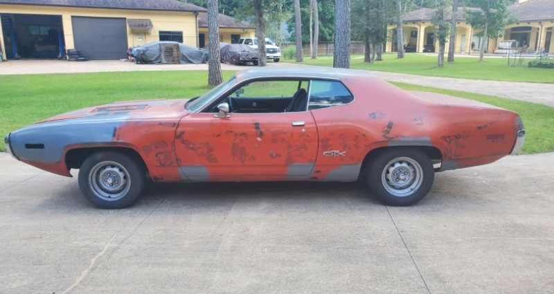 - Marque : Plymouth - Modèle : GTX - Année : 1971 - Couleur extérieure : Hemi orange (EV2) - Intérieur : Noir - Toit : Canope noir vinyle - Options : Freinage et direction assistés, climatisation, rapport de transmission 3:23 suregrip, bande d'accents noires, toit vinyle noir, sièges de cuir noirs avec console et levier de vitesse Slapstik rachet - Travaux : Sol et coffre nettoyés, sablés et recouverts de 2 couches de PPG époxy primaire. Une petite zone sur la planche de fond a dû être remplacée. Les jointures du coffre et du plancher ont été ré-soudées de la même manière que la fabrication initiale et ont été recouverts de 2 couches de la couleur de la carrosserie Hemi orange. - Moteur : E440 bloc, origine d'un '69. Têtes originaires de 906. Intake aftermarket hi-rise aluminum. Manifolds d'échappement originaires HP. - Suspension : Remplacés, blastés et peints en noir PPG époxy primaire puis peints. Roues : 15x7” rally’s avec pneus frais.. Provenance : Texas. Disponibilité : environ 7 semaines, clés en main. 35 000 € tout compris (importation, taxes, procédure d'immatriculation). Annonce publiée le 30/12/2025