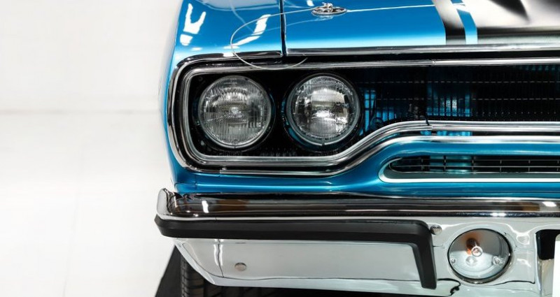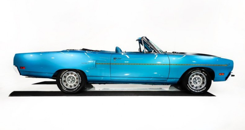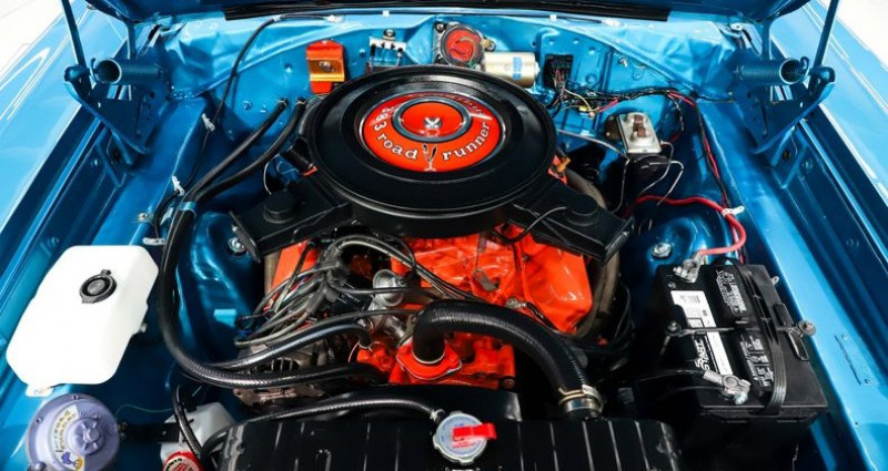 Ce Road Runner cabriolet, l'un des 658 exemplaires fabriqués en 1970, a été magnifiquement restauré en utilisant la méthode rotisserie. Les panneaux de carrosserie sont droits et s'alignent parfaitement. Il a été peint en B5 bleu métallique original et la peinture a été polie jusqu'à un éclat brillant. La configuration et les couleurs sont conformes à l'étiquette de la poignée de porte. Le couvercle de coffre, les parties inférieures et même les parties situées derrière les roues arrière sont en acier peint le même bleu métallique. L'essence de 383 Magnum est au cœur du moteur. Les manifoldes, les couvre-vales et l'embouchure d'air sont d'origine, mais sont améliorés avec un distributeur billet et une ignition électronique. Les alternatives, les courroies, la direction assistée, la radiateur et le freinage ont été nettoyés et réglés. Le boîte de vitesses Torqueflite à trois vitesses est également d'origine, avec des numéros de VIN correspondants au véhicule. L'arrière a une culasse 8 3/4 avec des rapports de 3, 23. L'intérieur est bleu et est doté de sièges à coussin réglables et d'un tableau de bord de course, avec un compteur tachymètre et une radio AM originale. La batterie, les composants de la voie et le système de freinage ont été remplacés.. Provenance : , USA. Disponibilité : 7 semaines, clés en main. 99 500 € tout compris (import, taxes, procédure d'immatriculation). Annonce publiée le 01/10/2025