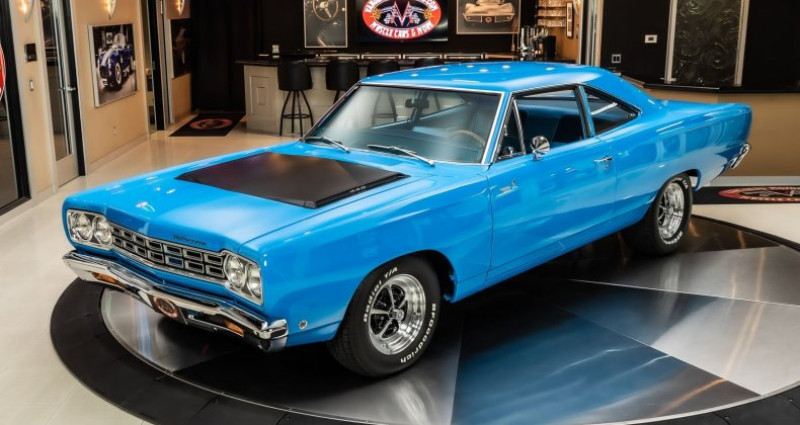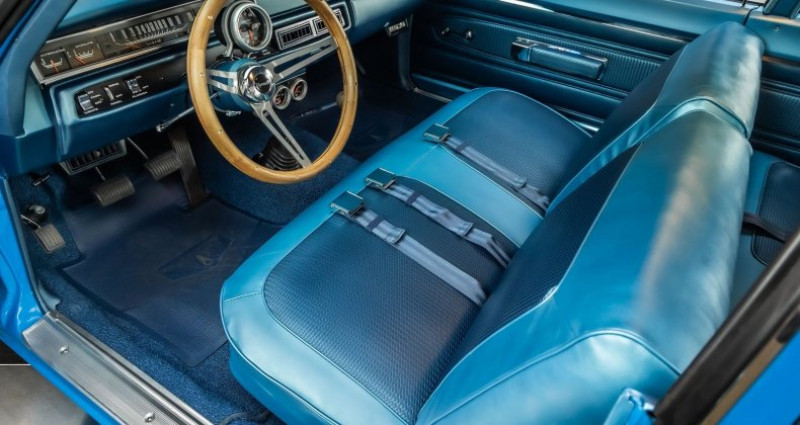 - Marque : Plymouth - Modèle : Road Runner - Année : 1968 - Numéro de série : RM21H8G255143 - Couleur extérieure : Petty Blue - Couleur intérieure : Blue - Kilométrage : 1 542 miles - Moteur : Mopar 440ci V8 - Boîte de vitesses : Mopar 4 Speed Manual Transmission - Transmission arrière : Sure Grip Rear End - Rapport de transmission arrière : 3.91:1 - Freins avant : Freins à disque - Suspension : Suspension de type factory style - Pneus : BFGoodrich Radial T/A Tires - Diamètre des pneus avant : 225/70/15 - Diamètre des pneus arrière : 275/60/15 - Équipements supplémentaires : Air conditioning, direction assistée, freins avant, système d'échappement bandé, lignes de frein neuves, lignes de carburant neuves, réservoir à carburant neuf, pièces de rechange neuves, système de suspension neuf, système d'échappement neuf. Provenance : Michigan. Disponibilité : environ 7 semaines, clés en main. 146 000 € tout compris (importation, taxes, procédure d'immatriculation). Annonce publiée le 08/12/2025