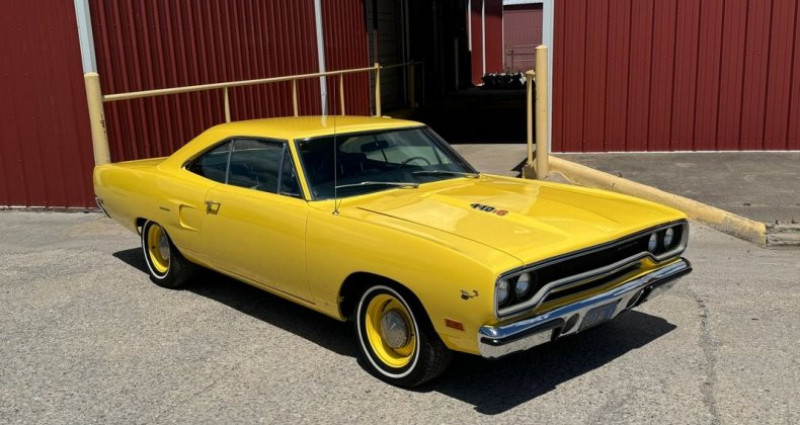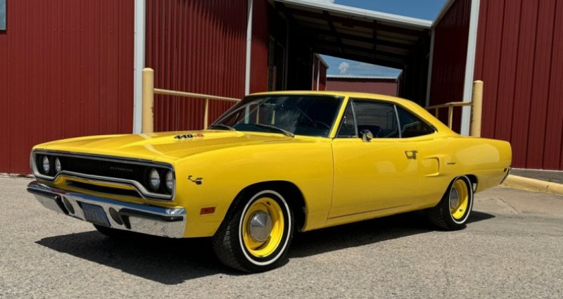 - Marque : Plymouth - Modèle : Road Runner - Année : 1970 - Numéro d'inventaire : 6400 - Couleur extérieure : Jaune (FYI Lemon Twist) - Couleur intérieure : Noir - Transmission : 3 vitesses automatique - Moteur : 440 Magnum V8 - Boîte à air : Oui - Freinage : Non spécifié - Kilométrage : 0 - État : Original, non restauré - Lieu : Allen, TX 75002 - Contact : Tony @ 505-503-3274. Provenance : Texas. Disponibilité : environ 7 semaines, clés en main. 89 500 € tout compris (importation, taxes, procédure d'immatriculation). Annonce publiée le 16/12/2025