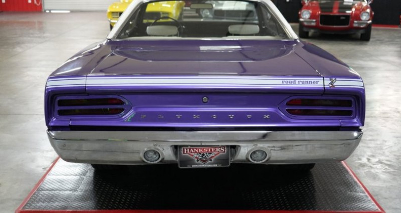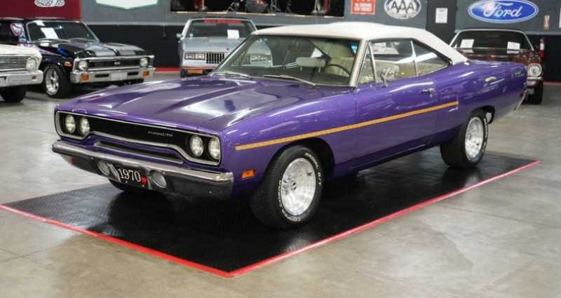 - Marque : Plymouth - Modèle : Roadrunner - Année : 1970 - Numéro d'inventaire : HC70ROAD8657-FL - Couleur extérieure : Violet In-Plymouth - Couleur intérieure : Blanc vinyle - Type de carrosserie : Coupé - Transmission : Chrysler 727 Torqueflite automatique - Moteur : 383 Magnum V8 (numéroté) - Boîte de vitesses : RWD - Pneus : Cooper Cobra Radial G/T sur des roues American Racing AR61 Outlaw de 15 pouces. Provenance : Pennsylvania. Disponibilité : environ 7 semaines, clés en main. 51 500 € tout compris (importation, taxes, procédure d'immatriculation). Annonce publiée le 18/12/2025
