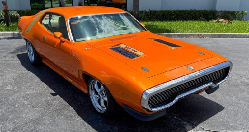 - Marque : Plymouth - Modèle : Roadrunner - Année : 1971 - Couleur extérieure : Orange - Couleur intérieure : Beige/Tan - Transmission : 6-vitesse manuelle - Moteur : 392 crate engine 6.4L SRT GEN III (485 ch / 475 lb-ft) - Boîte de vitesses : Tremec 6-spd N100 - Kilométrage : 1 385 miles - Travaux : Restauration professionnelle et améliorations extensives - Suspension : Rafraîchie complètement - Système audio : Custom (Pioneer AVIC5201, Kicker, Fosgate) - Système de refroidissement : Électriques - Éclairage : LED - Options : Hurst shifter, fenêtres, verrouillage et ouverture de coffre électriques, climatisation, etc. - Équipements supplémentaires : Connecteurs de châssis, receipts détaillés de Summit Racing, Weir, Mancini, etc. - État : Turnkey restomod fini à un standard exceptionnel - Véhicule prêt à être utilisé ou exposé. Provenance : Florida. Disponibilité : environ 7 semaines, clés en main. 145 500 € tout compris (importation, taxes, procédure d'immatriculation). Annonce publiée le 20/12/2025