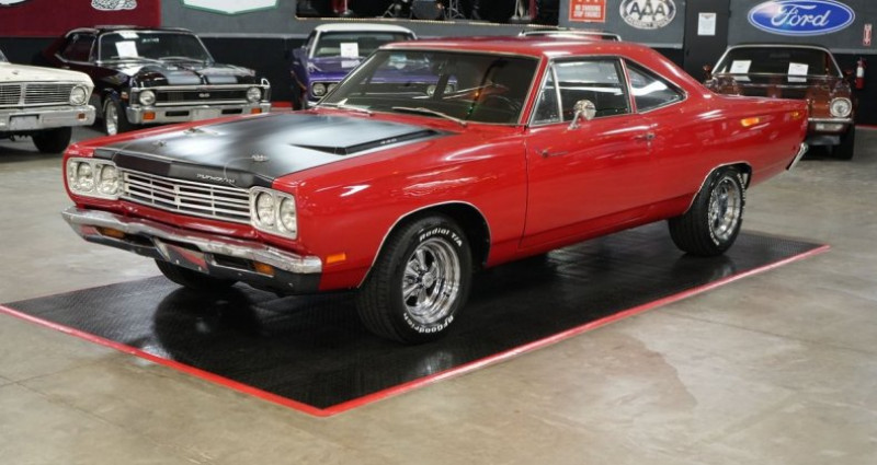- Marque : Plymouth - Modèle : Roadrunner - Année : 1969 - Stock : HC69ROAD7243-FL - Couleur extérieure : Rouge - Couleur intérieure : Noir - Type de carrosserie : Coupe - Transmission : Chrysler 727 Torqueflite Automatique - Moteur : 383 Magnum V8 - Boîte de vitesses arrière : Chrysler 8 3/4 avec 3.21 gearing - Pneus : BFGoodrich Radial T/A sur des roues chromées Cragar S/S de 15 - Upgrades : intake en aluminium, carburateur Edelbrock AVS 600 CFM, headers, échappement Flowmaster double, radiateur en aluminium. Provenance : Pennsylvania. Disponibilité : environ 7 semaines, clés en main. 60 500 € tout compris (importation, taxes, procédure d'immatriculation). Annonce publiée le 24/12/2025