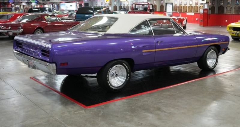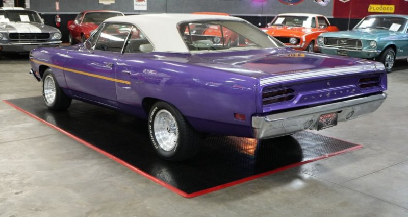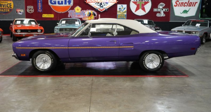 - Marque : Plymouth - Modèle : Roadrunner - Année : 1970 - Numéro d'inventaire : HC70ROAD8657-FL - Couleur extérieure : Violet In-Plymouth - Couleur intérieure : Blanc vinyle - Type de carrosserie : Coupé - Transmission : Chrysler 727 Torqueflite Automatique - Moteur : 383 Magnum V8 (numéroté) - Boîte de vitesses : RWD - Pneus : Cooper Cobra Radial G/T sur des roues American Racing AR61 Outlaw de 15. Provenance : Pennsylvania. Disponibilité : environ 7 semaines, clés en main. 51 500 € tout compris (importation, taxes, procédure d'immatriculation). Annonce publiée le 25/12/2025