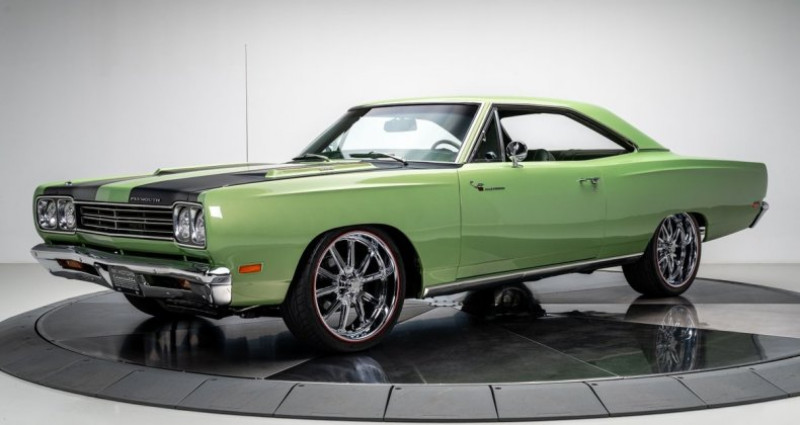 - Marque : Road Runner - Année : 1969 - Couleur extérieure : Vert clair - Couleur intérieure : Vert - Type de carrosserie : Coupé - Transmission : Automatique 4 vitesses - Moteur : 512 ci V8 - Mileage : 2 274 miles - Équipement : A/C, Coilovers, 4-link arrière, freins à disques avant et arrière, MagnaFlow exhausteur, roues US Mag de 20 pouces, pneus OHTSU et Mickey Thompson, Sniper EFI controller, Pioneer Bluetooth head unit, LED lighting, chrome trim, 'Road Runner' branding, 8 ¾ arrière (3.55 Sure Grip). Provenance : North Carolina. Disponibilité : environ 7 semaines, clés en main. 95 500 € tout compris (importation, taxes, procédure d'immatriculation). Annonce publiée le 26/12/2025