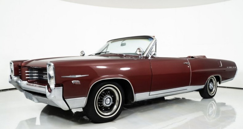 - Marque : Pontiac - Modèle : Bonneville - Année : 1964 - Type de carrosserie : Cabriolet - Couleur extérieure : Marimba Red Poly - Couleur intérieure : Rouge foncé - Moteur : 389 C.I. 4BBL V8 - Boîte de vitesses : 3 vitesses automatique Jetaway - Kilométrage : 48 570 - Roues : 8-lug Pontiac, pneus radiaux - Freins : Freins à disque exposés en aluminium fini - Transmission : Propulsion arrière (RWD). Provenance : Missouri. Disponibilité : environ 7 semaines, clés en main. 44 500 € tout compris (importation, taxes, procédure d'immatriculation). Annonce publiée le 06/12/2025