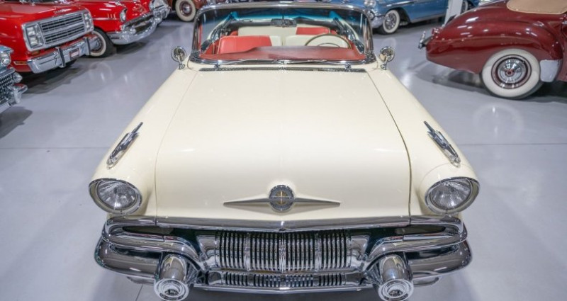 - Marque : Pontiac - Modèle : Bonneville - Année : 1957 - Carrosserie : Cabriolet - Moteur : V8 de 347 CID - Boîte de vitesses : Hydra-Matic Automatique - Couleur extérieure : Kenya Ivory/Bonneville Red - Couleur intérieure : Rouge & Ivory - Travaux : Restauration - Kilométrage : 219 miles (non converti). Provenance : Minnesota. Disponibilité : environ 7 semaines, clés en main. 126 500 € tout compris (importation, taxes, procédure d'immatriculation). Annonce publiée le 30/12/2025