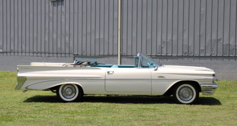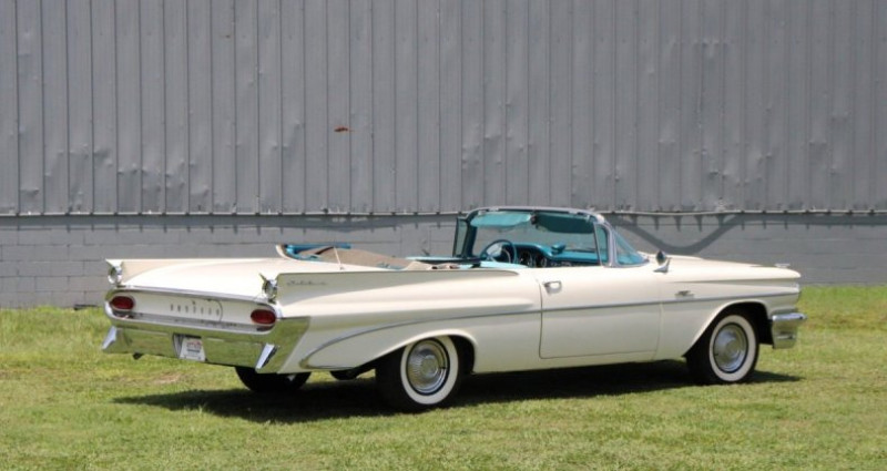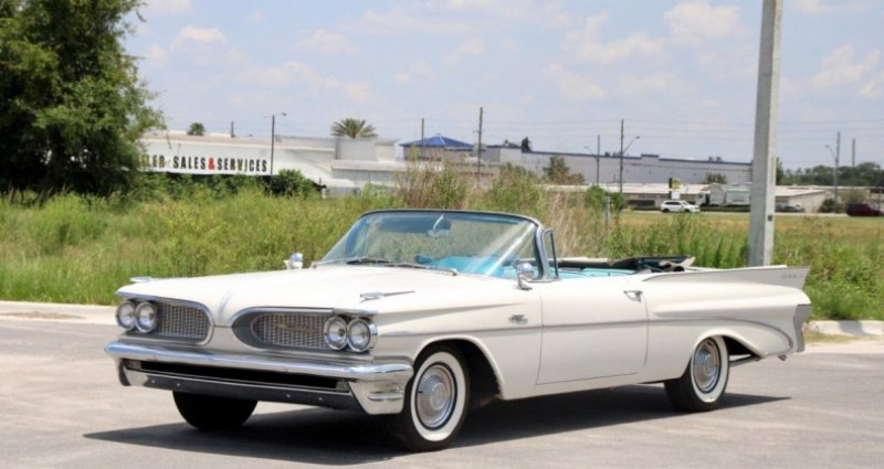 1959 Pontiac Catalina Convertible • White exterior • Blue interior • 2 Door • Automatic transmission • RWD • 51, 535 miles • 389 cubic inch V8 engine • Tri-Power carburetion • Dual snorkel air cleaner • Power Brakes • Dual Exhaust • Power Convertible Top • Listed on eBay Store 123456789101112131415161718192021222324252627282930313233343536373839404142434445464748495051525354555657585960616263646566676869707172737475767778. Provenance : Florida. Disponibilité : environ 7 semaines, clés en main. 54 000 € tout compris (importation, taxes, procédure d'immatriculation). Annonce publiée le 27/11/2025