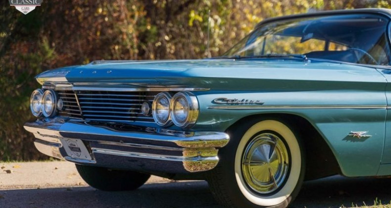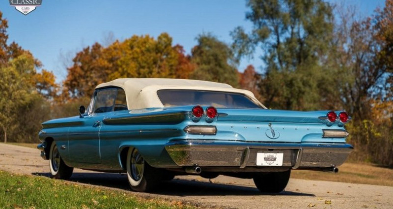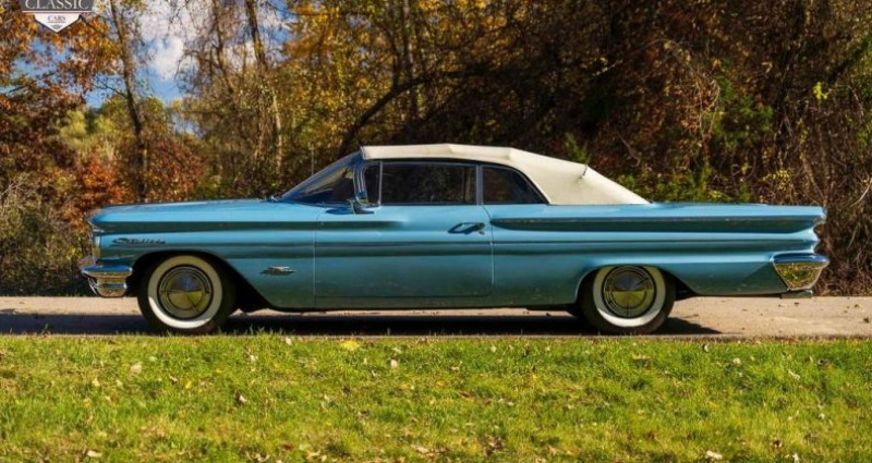- Marque : Pontiac - Modèle : Catalina - Année : 1960 - Type de carrosserie : 2D Convertible - Couleur extérieure : Lucerne Blue - Couleur intérieure : Blanc - Moteur : 389c.i. V8 - Puissance : 348 ch - Boîte de vitesses : Manuelle, 3 vitesses - Équipement : Air conditionné, freinage et direction assistés, toit ouvrant électrique, système de verrouillage différentiel limité Safe-T-Track (Posi-traction). Provenance : Michigan. Disponibilité : environ 7 semaines, clés en main. 35 000 € tout compris (importation, taxes, procédure d'immatriculation). Annonce publiée le 26/12/2025