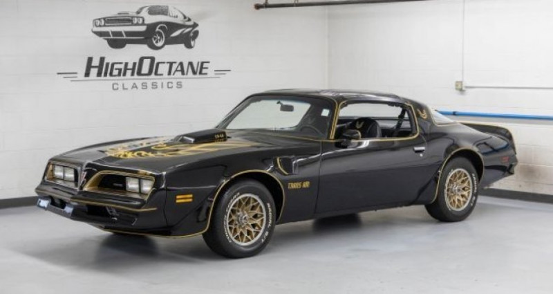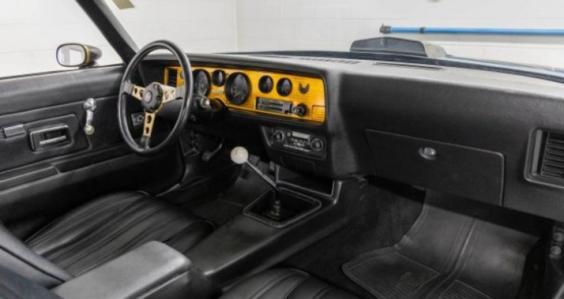 1977 Pontiac Firebird Trans Am, Y82 SE, Stock #: HOC1111, Exterior Color: Black, Interior Color: Black, Body Type: Coupe, Transmission: Manual, Drivetrain: RWD, Mileage: 51, 823, Engine: 400ci V8, Edelbrock intake, aluminum valve covers, KSS aluminum radiator, Hurst shifter, Gold engine-turned dashboard. Provenance : Massachusetts. Disponibilité : environ 7 semaines, clés en main. 119 000 € tout compris (importation, taxes, procédure d'immatriculation). Annonce publiée le 25/11/2025