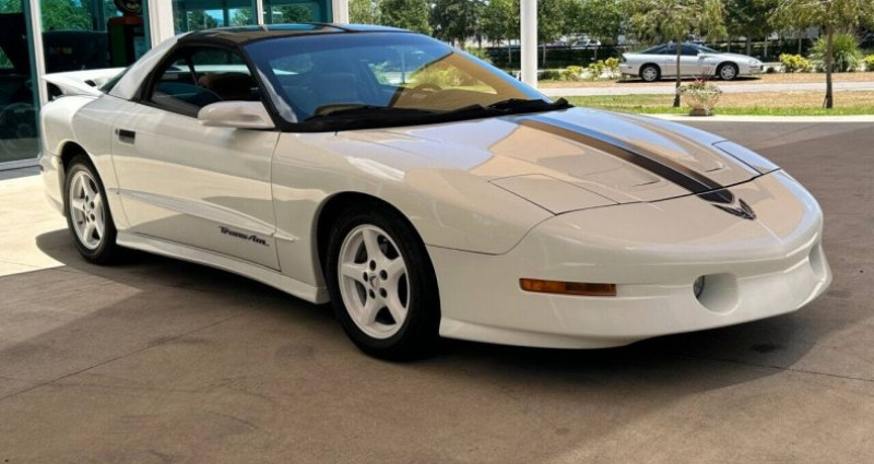 - 1995 Pontiac Firebird - Stock #: 2321-FL - Exterior Color: White - Interior Color: Gray - Body Type: Hatchback - Transmission: Automatic 4-Speed - Engine: 5.7L V8 275hp 325ft. lbs. - Mileage: 127, 112 - Features List: - 350 ci V8 5.7 engine - Automatic Overdrive transmission - Power Steering - Power Disc Brakes - Air Conditioning - Clean and detailed engine compartment - White racy rims - Black sidewall performance tires - Sporty interior with front bucket seats and matching rear seat - Factory steering wheel and gauges - Power Windows, Door Locks, and Mirrors - T-Tops for open-air driving experience - Aerodynamic body design with rear spoiler - Dual matching painted sport mirrors - Mechanical: Not provided - Disclaimer: - Information found on the website is presented as given to us by the owner of the car, whether on consignment or from the owner we bought it from. Some Photos, materials for videos, descriptions and other information are provided by the consignor/seller and is deemed reliable, but Skyway Classics does not warranty or guarantee this information. Skyway Classics is not responsible for information that may be incorrect or a publishing error. The decision to purchase should be based solely on the buyer's personal inspection of the vehicle or by a professional inspection service prior to offer or purchase being made.. Provenance : Florida. Disponibilité : environ 7 semaines, clés en main. 21 500 € tout compris (importation, taxes, procédure d'immatriculation). Annonce publiée le 02/12/2025