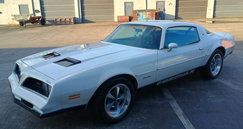 - Marque : Pontiac - Modèle : Firebird Formula WS6 - Année : 1977 - Moteur : 400CI V8 - Boîte de vitesses : Automatique - Transmission : Propulsion arrière - Couleur extérieure : Blanc - Couleur intérieure : Cuir noir - Kilométrage : 41 799 miles - Équipements : Freins neufs, amortisseurs neufs, échappement neuf, tuyaux d'échappement X pipe, camshafts neufs, lifters neufs, rockers neufs, tachymètre original, climatisation améliorée, roues de 17 pouces PMD, taché originalement, A/C disponible, moteur 400CI, moteur V8, transmis par CARFAX, livraison nationale/internationale possible.. Provenance : Florida. Disponibilité : environ 7 semaines, clés en main. 50 000 € tout compris (importation, taxes, procédure d'immatriculation). Annonce publiée le 06/12/2025