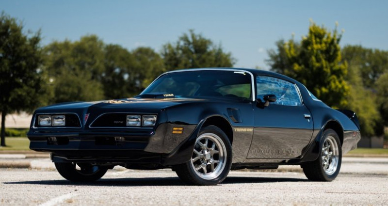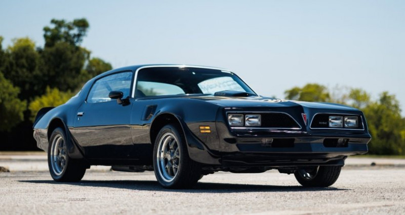 - Marque : Pontiac - Modèle : Firebird Trans Am - Année : 1978 - Type de carrosserie : 2D Coupe - Couleur extérieure : Starlight Black - Couleur intérieure : Noir - Moteur : Pontiac 400CI V8 - Boîte de vitesses : Automatique Turbo 350 - Suspension : Stock Suspension en bon état - Freins : Freins avant à disques - Climatisation : Climatisation fonctionnelle - Système audio : Kenwood Head Unit avec Bluetooth, SiriusXM, Spotify compatible et plus - Pneus : 4 Toyo Extensa HP II Tires neuves - Roues : 17 Ridler avec lip poli - Anti-roulis arrière : WS6 Rear Anti-Sway Bar - Rear End : Safe-T-Track Posi Rear End 3.23:1 Gear Ratio - État : Restauration complète - Mileage : 111 miles. Provenance : Texas. Disponibilité : environ 7 semaines, clés en main. 62 500 € tout compris (importation, taxes, procédure d'immatriculation). Annonce publiée le 16/12/2025