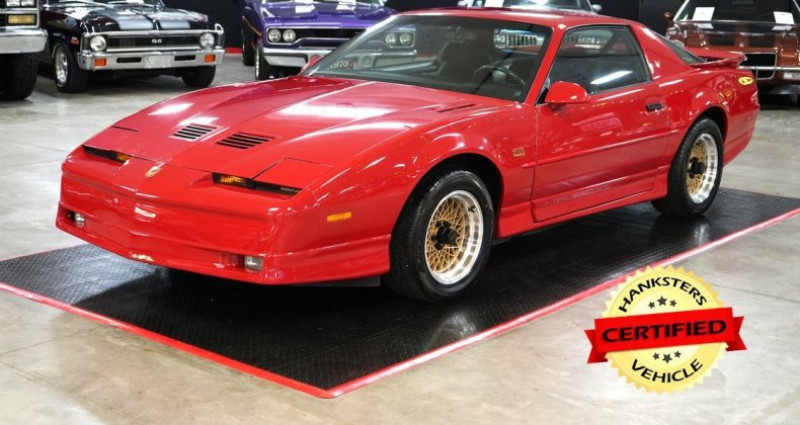 - Marque : Pontiac - Modèle : Firebird - Année : 1987 - Numéro d'inventaire : 87TRAN7476-FL - Couleur extérieure : Rouge - Couleur intérieure : Noir - Type de carrosserie : Coupe - Boîte de vitesses : 700R4 Automatique - Type de carburant : Essence - Moteur : 5.7L Gas V8 - Mileage : 47, 424 miles - Propulsion : Propulsion arrière - Pneus : Falken Ziex sur des roues OEM GTA de 16 dorées - Équipements : climatisation, direction assistée, freinage assisté, freins à disque à 4 roues, injection à port d'huile OEM tunée, deux ventilateurs électriques. Provenance : Pennsylvania. Disponibilité : environ 7 semaines, clés en main. 35 000 € tout compris (importation, taxes, procédure d'immatriculation). Annonce publiée le 20/12/2025