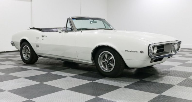 - Marque : Pontiac - Modèle : Firebird - Année : 1967 - Kilométrage : 3 978 miles - Couleur extérieure : Blanc - Couleur intérieure : Noir - Type de carrosserie : Cabriolet - Transmission : 2 vitesses Powerglide Automatique - Moteur : 326ci V8 - Équipement supplémentaire : roues Pontiac Rally de 14 pouces, direction assistée, freinage assisté, radio rétro, capot et carburateur Edelbrock aluminium, sièges baquets noirs avec console et levier de vitesses au sol, freinage à 4 roues à tambour.. Provenance : Texas. Disponibilité : environ 7 semaines, clés en main. 35 000 € tout compris (importation, taxes, procédure d'immatriculation). Annonce publiée le 27/12/2025