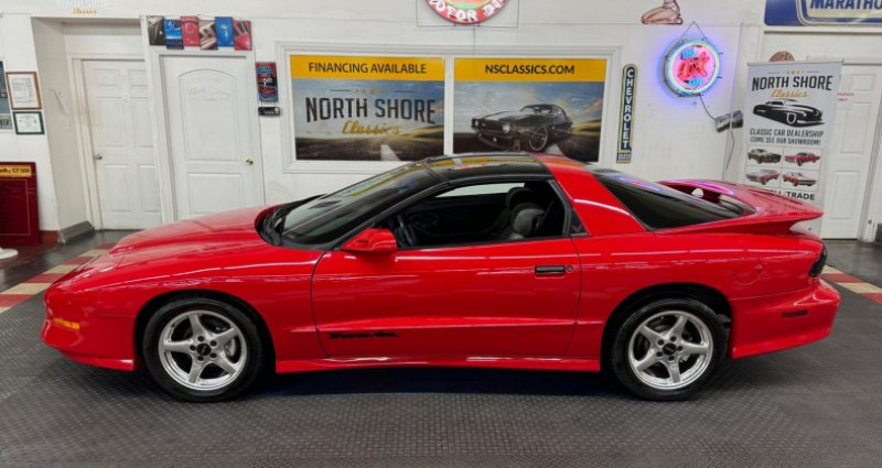 - Marque : Pontiac - Modèle : Firebird Trans Am - Année : 1996 - Version spéciale : WS6 - Numéro d'inventaire : 96704KFCVO - Couleur extérieure : Rouge vif - Couleur intérieure : Gris - Type de carrosserie : Coupe - Boîte de vitesses : Boîte manuelle à 6 rapports - Moteur : V8 essence de 5.7L - Transmission : Propulsion arrière - Kilométrage : 48 065 miles (environ 77 289 km) - Travaux récents : Nouveau serpentinier, nouvelle pompe à air conditionné, nouvelle batterie, changement d'huile frais. Provenance : Illinois. Disponibilité : environ 7 semaines, clés en main. 28 500 € tout compris (importation, taxes, procédure d'immatriculation). Annonce publiée le 30/12/2025