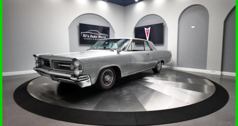 1963 Pontiac Grand Prix - VIN: 963L33292 - Stock: 15471 - Mileage: 53472 - Color: Silver (exterieur) / Rouge (intérieur) - Body: Coupe - Engine: 421 Tri Power H.O. V8 - Transmission: Automatique - Wheels: 14 8 lug - Features: Dual exhaust, power steering, power brakes, fender mount driver side remote mirror, detailed engine bay, red bucket seat interior, driver's power seat, vanity mirror, back-up lamps, Safeguard Speedometer, black floor mats with logo, power windows, center console with floor shifter, factory AM/FM stereo, power antenna, center console with vacuum gauge, day night mirror, PHS Packet.. Provenance : Florida. Disponibilité : environ 7 semaines, clés en main. 54 000 € tout compris (importation, taxes, procédure d'immatriculation). Annonce publiée le 01/12/2025