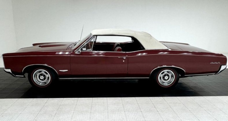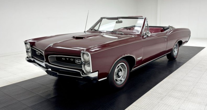 Le véhicule en question est un convertible Pontiac GTO de l'année 1966, doté d'un certificat d'immatriculation valide. Depuis 1991, il a été propriété d'un particulier et conserve son moteur original de 389 ci de cylindrée, produisant 325 chevaux. Son extérieur est peint en deux tons de burgundy, accentué par les pneus rouges et la capote blanche. Les grilles à l'avant, typiques de Pontiac, sont présentes sur tous les modèles de l'année 1966 et les feuilles arrière distinctives du GTO ont inspiré le Monkeemobile de George Barris, célèbre pour la télévision. Le véhicule présente une bonne condition extérieure, malgré quelques imperfections comme des discolorations de la capote, une légère opacification des vitres plastiques, des bubblages sur les panneaux inférieurs et une décoloration partielle des emblèmes GTO. L'intérieur est revêtu de cuir rouge et est en très bon état. La voiture est équipée d'un volant rouge à rayon court, d'une panneau instrumentaire en bois gravé et d'un système audio AM avec convertisseur FM. La trémie à bagages présente un tapis à motif plaid et une couverture de pneus. Le moteur est peint en bleu et chrome et est équipé de trois carburateurs à deux barils pour une alimentation en carburant tri-power. Le moteur est associé à une boîte de vitesses automatique à 3 rapports, envoyant la puissance à un essieu arrière à 10 rangées. L'empattement est propulsé par des freins à tambour à tous les roues et une suspension composée de ressorts hélicoïdaux à l'avant et arrière, avec un 4-barres arrière. Lors du tour de piste de test, la voiture présente un bon accélération, un freinage résponsable et une conduite saine. Bien qu'il présente quelques imperfections, il s'agit d'un véhicule intéressant pour les passionnés de GTO en quête d'une voiture propre et droite.. Provenance : , USA. Disponibilité : 7 semaines, clés en main. 58 500 € tout compris (import, taxes, procédure d'immatriculation). Annonce publiée le 15/10/2025