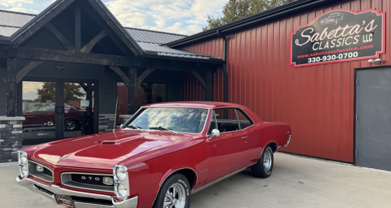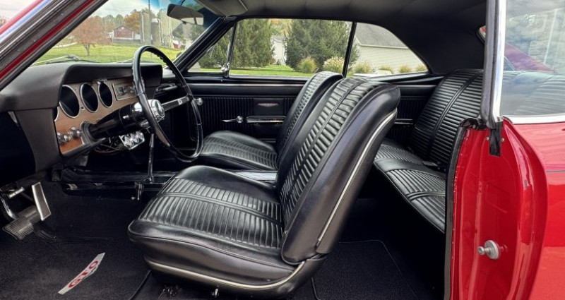 Ce 1966 Pontiac GTO est équipé de la couleur de carrosserie originale, Montero Red (code R), avec un intérieur en noir en cuir. La peinture présente une finition claire et lisse. Le véhicule est en parfait état, avec une bonne qualité de finition et une alignement correcte. Tout le chrome et les éléments de trim sont en parfait état. Le coffre arrière est propre et en bon état, avec des jantes Cragar SS de 15 pouces en roue de course recouvertes de pneus BFG T/A à lettres blanches élevées. L'intérieur est en parfait état, avec un panneau de console de vitesse central 4 vitesses en bon état, qui présente une courroie de vitesse optionnelle noire. Toutes les panneaux de portes, sièges arrière, plaques de porte, tapis et plafond ont été remplacés lors de la rénovation de 2006. Le tableau de bord présente un compteur de vitesse optionnel. Les équipements supplémentaires comprennent une radio AM/FM. L'habitacle a une tachymétrie, un tapis de sol, des ceintures de sécurité avant et arrière et des plots de porte peints. L'ensemble moteur est détaillé avec un moteur V8 à injection d'air de 389 pouces cubes équipé de trois carburateurs triple potence. Le moteur a été entièrement rénové. Il présente des couvre-têtes de vannes Pontiac en chrome, des collecteurs d'échappement Ram Air à 4 cœurs, un radiateur à 4 noyaux Harrison et des isolations sous le capot. D'autres équipements comprennent une direction assistée et un freinage avant à disques de puissance amélioré, un système d'échappement double en aluminium qui court tout au long du véhicule. La caisse arrière présente des solides planchers originaux qui sont peints en finition satin noir. La suspension avant a été révisée et les freins avant ont été améliorés à des freins à disques. Le moteur et la boîte de vitesses sont propres. La voiture est équipée d'une boîte de vitesses manuelle à 4 vitesses à rapports courts, d'une boîte de vitesses arrière à rapport de 3, 90, de suspensions avant et arrière améliorées, de réservoir de carburant neuf, d'un conducteur de carburant et des ceintures de protection de l'habitacle. L'habitacle présente un système d'échappement double en aluminium qui court tout au long de la voiture. Le coffre arrière présente un plancher de coffre d'origine propre avec une matrice de coffre et un kit de change de roue avec l'équipement de sécurité.. Ce descriptif est basé sur les éléments communiqués par le propriétaire avec un traitement assisté. Merci pour votre indulgence en cas de formulation perfectible. Provenance : Ohio. Disponibilité : 7 semaines, clés en main. 73 000 € tout compris (importation, taxes, procédure d'immatriculation). Annonce publiée le 03/11/2025