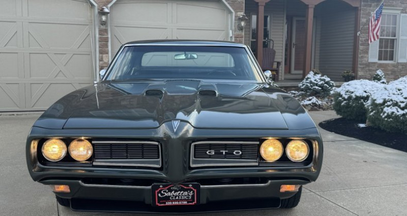 Voici une description d'un 1968 Pontiac GTO, avec le numéro de documentation # MATCHING 400 et transmission manuelle à 4 vitesses. Le véhicule est coloré en vert sombre, Nightshade Green, et est équipé d'un moteur de 400 cu in. Il possède une carrosserie sans défauts, des pare-chocs avant en Endura bumper sans défauts, des phares cachés fonctionnant correctement, des grilles avant en excellente état et des accessoires en acier inoxydable soit remplacés ou polis. La partie intérieure noire est redone de la tapisserie à la tête de coffre. La console est en bon état et conserve le levier de vitesses Hurst original. L'habitacle est équipé de ceintures de sécurité avant et arrière. Le tableau de bord a été restauré. L'émetteur AM est toujours fonctionnel. La carrosserie est décorée de finitions satin noir et l'essieu arrière est rallongé. La suspension et le volant ont été entièrement reconstruits. Le véhicule roule sur des roues de 17x9 Cast Aluminum Rally II avec des jantes noires PMD et des pneus Nitto directionnels 285/40/ZR17 à l'arrière et 245/45/ZR17 à l'avant. La trémie est décorée d'un badigeon de spatter. Le véhicule possède une matraque et une barre de secours, une roue de secours et un assemblage de jack avec un clou et un clé. Ce GTO possède de nombreuses caractéristiques désirables. Il est très propre et roule et s'affiche bien.. Ce descriptif est basé sur les éléments communiqués par le propriétaire avec un traitement assisté. Merci pour votre indulgence en cas de formulation perfectible. Provenance : Ohio. Disponibilité : 7 semaines, clés en main. 57 000 € tout compris (importation, taxes, procédure d'immatriculation). Annonce publiée le 11/11/2025