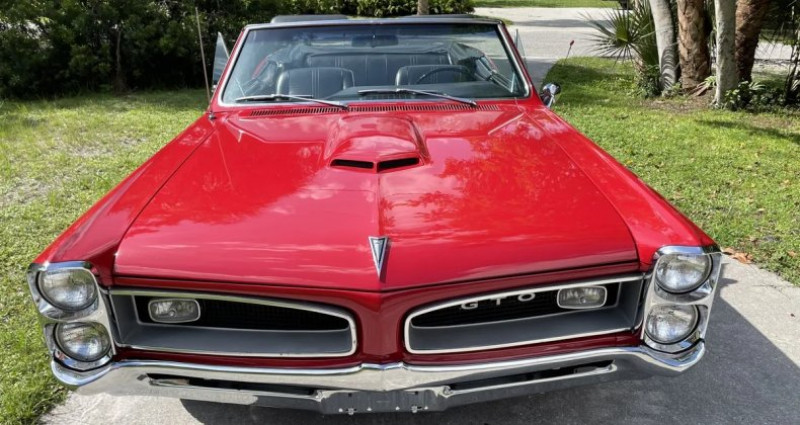 Ce véhicule est un Pontiac GTO convertible de 1966, doté d'un moteur de 389 cubic inches, équipé d'une boîte de vitesses automatique à deux rapports et d'une climatisation. Sa carrosserie est de la couleur Montero Red avec une toiture noire et un intérieur noir. Il dispose d'un freinage et d'un système de direction aidé, d'un toit rétractable récemment motorisé, de fenêtres électriques d'origine mais indisponibles, d'une transmission arrière à rapport 3.55 avec un système Safe-T-Track posi, et d'instruments de bord Rallye. Le moteur a été complètement reconstruit et dynoé, avec un bloc et des culasses thermo-nettoyés et shoot-peinés avant de subir des travaux de machining. La vitesse de rotation de la camshaft a été définie pour un maximum de performance et la totalité du travail de revalage a été réalisé avec de nouvel équipement Rottler. Le rapport de compression est de 10, 5 à 1 pour du carburant de 93 octans. Le moteur a été dynoé à 376 ch et 385 lb-ft de couple. La reconstitution du moteur comprend un nouveau piston de soupapes à roulement hydraulique, des soufflets à roulements doubles et un nouveau capot de distribution équipé d'une ignition électronique Pertronix. Le transmission automatique Super Turbine a été entièrement reconstitué et équipé de nouveau convertisseur de couple. Les lignes de carburant, les clignotants et les inserts de tableau de bord en noisette ont été renouvelés. L'intérieur a été minutieusement débarrassé de toutes traces de usure, et les éléments de luminaire ont été remplacés. La carrosserie est d'un état exceptionnel, avec un aspect semblant d'une rénovation ancienne. La peinture brille au soleil et les panneaux sont droits. Le seul point à prendre en considération pour l'acheteur est l'achat de carburant et le plaisir de conduire la voiture. Toutes les documents d'accompagnement, tels que les manuels, les plaques de protections, la feuille de dynamométrie, le récépissé de révision de la transmission et la liste des pièces et les factures de construction seront fournis à l'achèteur.. Provenance : FL, USA. Disponibilité : 7 semaines, clés en main. 67 000 € tout compris (import, taxes, procédure d'immatriculation). Annonce publiée le 12/11/2025