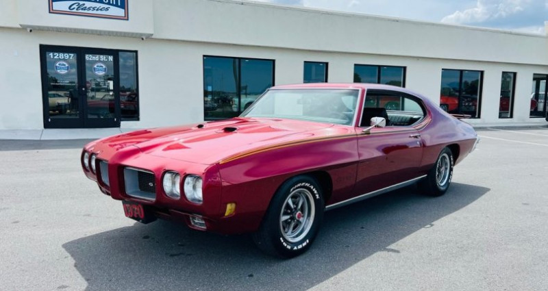 Informations fournies par le vendeur : 1970 Pontiac GTO400 CID V8 Engine400 Turbo Automatic TransmissionFactory Ram-Air HoodCold Factory Style ACPower SteeringPower Disc BrakesNewly Upholstered Bucket Seats with Center Console and ShifterWoodgrain Steering WheelWoodgrain Dash and Center ConsoleIn Dash Factory TachometerSpare TireDual Exhaust with Quad TipsRear SpoilerPontiac Rally Wheels with Raised White Letter TiresCardinal Red ExteriorBlack Interior0 Mileage (claimed). Provenance : Florida. Disponibilité : environ 7 semaines, clés en main. 58 500 € tout compris (importation, taxes, procédure d'immatriculation). Nous représentons les acheteurs sur le marché nord-américain et sécurisons chaque étape du processus, de la sélection à la mise en circulation. Annonce publiée le 19/11/2025