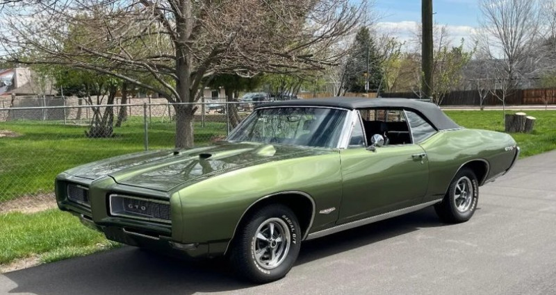 1968 Pontiac GTO convertible, 400-350 HP, TH400 Automatic, Hurst dual-gate Shifter, Power steering, Power front disc brakes, Hide-A-Way headlights, Factory Hood Tachometer, Power convertible top, Rally II wheels. Older restoration, Factory window sticker, Runs and drives beautifully, Older restoration, Rally II wheels.. Provenance : CO, USA. Disponibilité : environ 7 semaines, clés en main. 48 000 € tout compris (import, taxes, procédure d'immatriculation). Annonce publiée le 24/11/2025