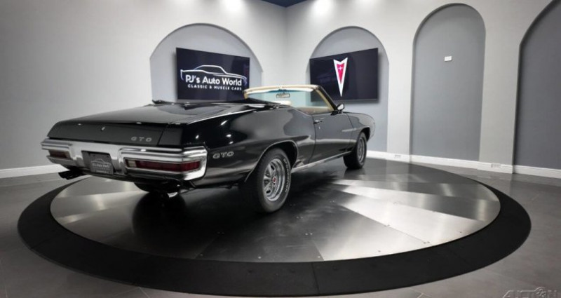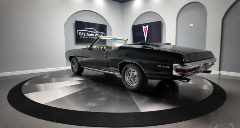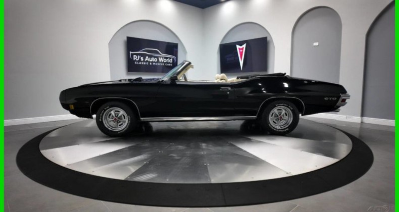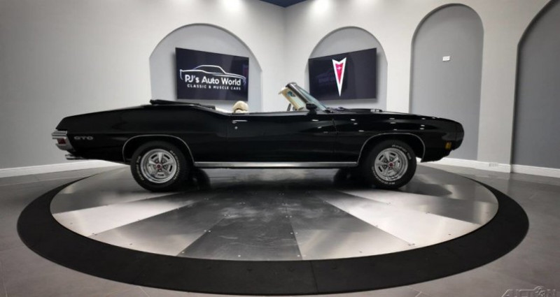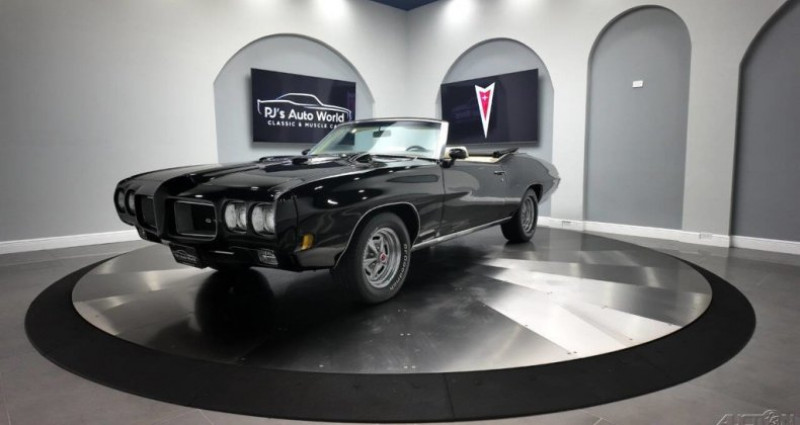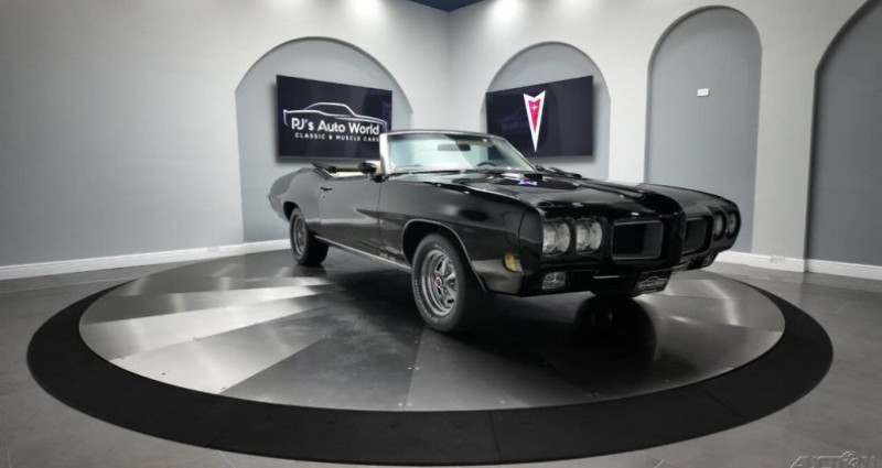 1970 Pontiac GTO • Convertible • Black • Tan Interior • 400 V8 • Manual 4-Speed • Black Exterior • 15 Chrome Plated Rally II Wheels • Numbers matching WT Suffix engine block • Power steering • Power disc brakes • Dual snorkel air cleaner • Holley 4-barrel carburetor • HEI electronic ignition • Upgraded Ram Air exhaust manifolds • Dual exhaust with crossover pipe and quad chrome exhaust tips • Muncie 4-Speed manual transmission • Posi rear end. Provenance : Florida. Disponibilité : environ 7 semaines, clés en main. 72 500 € tout compris (importation, taxes, procédure d'immatriculation). Annonce publiée le 28/11/2025