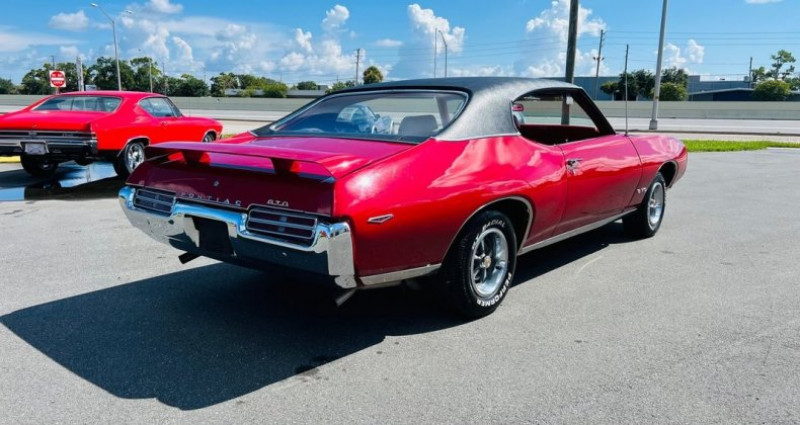 - Marque : Pontiac - Modèle : GTO - Année : 1969 - Moteur : 400 CID V8 - Boîte de vitesses : Automatique - Couleur extérieure : Rouge Matador - Couleur intérieure : Rouge - Type de carrosserie : Coupe - Accessoires : Hood Tach fonctionnel, Hideaway Headlights fonctionnels, Power Steering, Black Vinyl Top, Bucket Seats avec console centrale et levier de vitesses, Rear Spoiler, Pontiac Rally Wheels avec pneus à lettres blanches élevées - Travaux : Upgraded Carb, HEI Distributor, Upgrade Gauges, Aluminum Intake, Chrome Valve Covers avec air cleaner correspondant, 8-Track audio original, Vintage AC, CVF Racing, Dakota Gauges, Wilwood Brakes, Ridetech Suspension (options de mise en place). Provenance : Florida. Disponibilité : environ 7 semaines, clés en main. 50 000 € tout compris (importation, taxes, procédure d'immatriculation). Annonce publiée le 08/12/2025