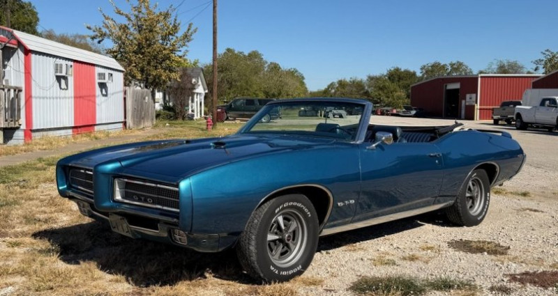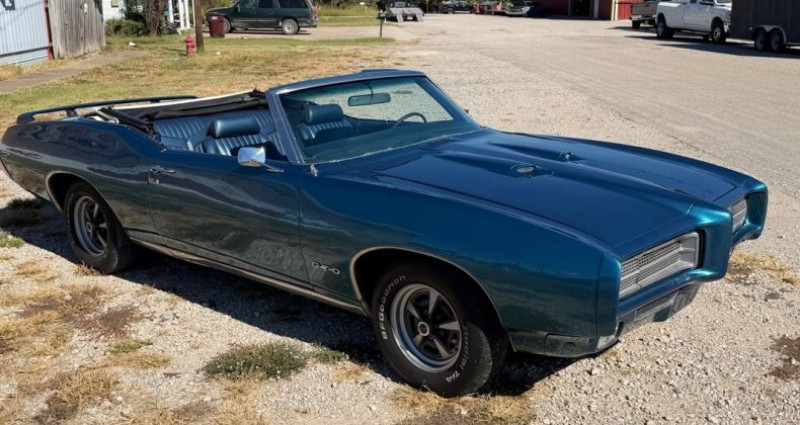 - Marque : Pontiac - Modèle : GTO - Année : 1969 - Type de carrosserie : Cabriolet - Numéro d'identification : 6301 - Couleur extérieure : Bleu - Couleur intérieure : Bleu - Toit : Toit ouvrant blanc neuf - Transmission : 3 vitesses automatique - Moteur : 400 V8 4bbl - Kilométrage : 0 - Équipement : Toit ouvrant électrique, direction assistée, freins à disque avant électriques - Documentation : PHS Docs inclus - Vente : Celeste, TX 75423 - Contact : Tony @ 505-503-3274. Provenance : Texas. Disponibilité : environ 7 semaines, clés en main. 58 500 € tout compris (importation, taxes, procédure d'immatriculation). Annonce publiée le 16/12/2025