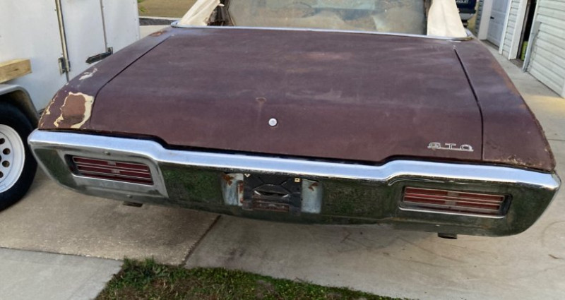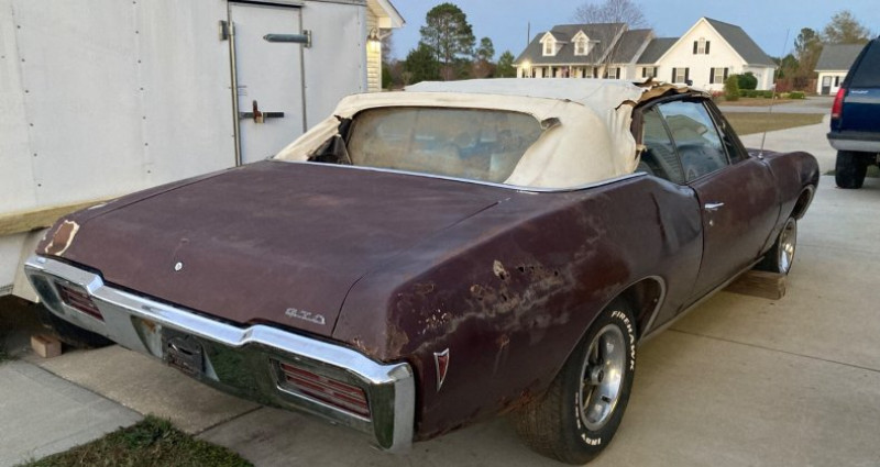 - Marque : Pontiac - Modèle : GTO - Année : 1968 - Type de carrosserie : Cabriolet - Couleurs extérieures : Meridian Turquiose Poly et Noir (toit) - Intérieur : Noir - Options : Hideaway Headlights, Freinage avant à disque, direction assistée, Rally Gauges w/Clock, volant en bois, sièges individuels, console de plancher His/Hers, roues Rally II, lumière de courtoisie arrière, paquet de trim Valance - Moteur : 400ci/350Ch, non-VIN original, YS code, Edelbrock intake et carburateur, 4 tuyaux Doug Thornley Headers, 3” échappement, Turbo 400 PX Coded Auto trans, 10 Bolt Nodular 4 Pinion 3:36 gear ratio Posi Rearend, Sway Bar arrière, suspensions inférieures boîtées - Roues : Rally II originales 1968 JK code - État : Bon, mais pas parfait, certaines parties ont besoin de réparations - Accessoires : Nouveau toit noir et fenêtre arrière arrière, couvre-bottes originales noirs, couverture de toit et moteur de toit, intérieur réupholstéré professionnellement, intérieur et extérieur en bon état, verre et chrome en bon état. Provenance : South Carolina. Disponibilité : environ 7 semaines, clés en main. 23 000 € tout compris (importation, taxes, procédure d'immatriculation). Annonce publiée le 17/12/2025