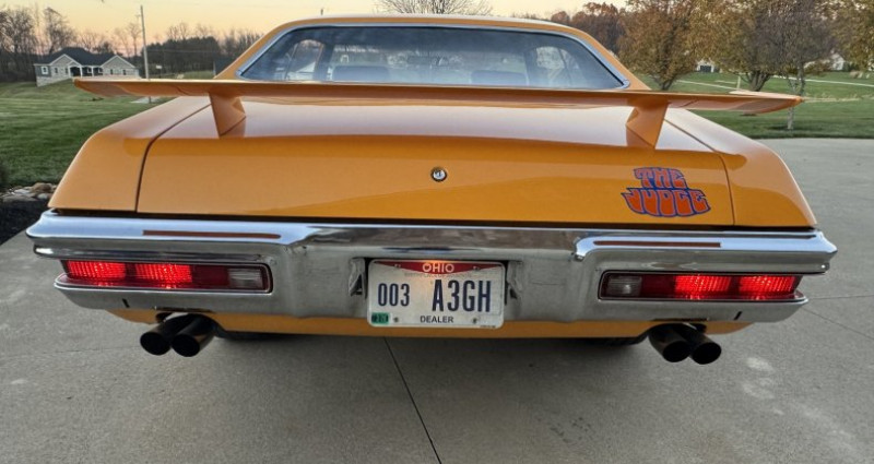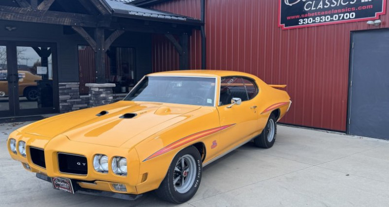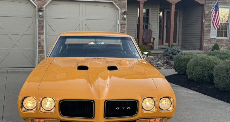 - Marque : Pontiac - Modèle : GTO - Année : 1970 - Couleur extérieure : Orbit Orange - Couleur intérieure : Noir - Type de carrosserie : 2 portes coupé - Boîte de vitesses : Boîte manuelle à 4 vitesses - Type d'essence : Essence - Moteur : 400 ci - Kilométrage : 16 000 - Transmission intérieure : Propulsion arrière - Numéro de châssis original : 242370P278XXX. Provenance : Ohio. Disponibilité : environ 7 semaines, clés en main. 65 500 € tout compris (importation, taxes, procédure d'immatriculation). Annonce publiée le 18/12/2025