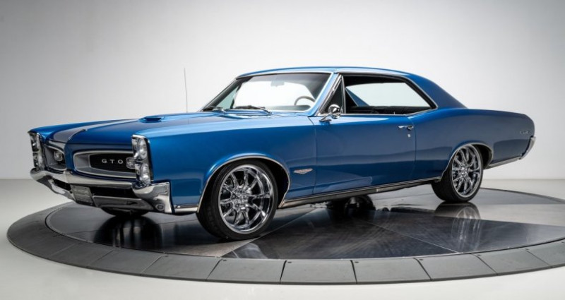 - Marque : Pontiac - Modèle : GTO - Année : 1966 - Couleur extérieure : Barrier Blue - Couleur intérieure : Noir - Type de carrosserie : Hardtop - Moteur : 6.0L LS V8 - Boîte de vitesses : 6 vitesses manuelle - Transmission : RWD - Kilométrage : 2 609 miles - Equipements : Air conditioning, LED lighting, chrome Ridler wheels, tubular control arms, Aldan coilovers, MP four-wheel power disc brakes, power steering, Dakota Digital gauges, modern air conditioning, Custom Autosound Bluetooth stereo avec Kicker speakers.. Provenance : North Carolina. Disponibilité : environ 7 semaines, clés en main. 136 000 € tout compris (importation, taxes, procédure d'immatriculation). Annonce publiée le 19/12/2025