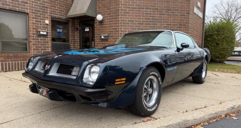1975 Pontiac Trans Am, Stellar Blue with White & Blue Interior, PHS Documented, #s Match 455 HO 4spd, Richmond Super T10 4 Speed Trans, Power Steering, Power Brakes w/ Front Disc, Factory AC, Ceramic Headers w/ Stainless Steel Dual Exhaust, Rally IIs w/ Cooper Cobra Radial Tires, Stainless Gas Tank, Stainless Brake Lines, Stainless Gas Lines, KYB Shocks, All New Suspension Components, New Leaf Springs, New E Brake Components, Numbers Matching Transmission & Internals Included, WX Code & Serial # On Block, Beautiful Stellar Blue Paint & Body, High Quality Finish, Excellent Condition Glass, Door Corners Mint, Rear Spoiler Aligned, No Rust & No Bubbles, Extremely Beautiful Factory Correct Interior, New Carpet, New Headliner, Door Panels Replaced, New Dash Pad, New Steering Wheel, Unmolested Dash, Gauges, Radio, New Trunk Mat, Light Blue Trans Am Floor Mats, High Quality Detailed Chassis, Completely Rust Free, All Lights Work, All Gauges Work Except Tach, Clock Works, Horn Works, Wipers Work, AC/Blower Works, New Radio (Not Hooked Up), Runs, Drives & Shifts Excellent. Provenance : Illinois. Disponibilité : environ 7 semaines, clés en main. 57 500 € tout compris (importation, taxes, procédure d'immatriculation). Annonce publiée le 29/11/2025