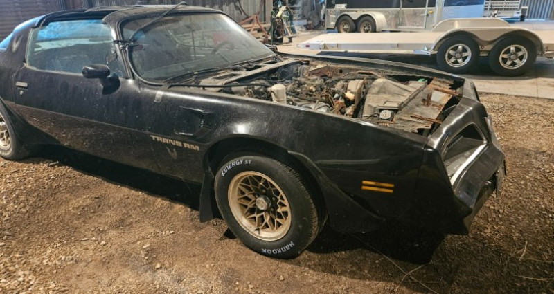 - Année : 1978 - Modèle : Pontiac Trans AM - Édition spéciale : Factory Bandit Edition - État : Needs a full restoration - Toit : T-tops inclus - Moteur : Pontiac 400 C.I.. Provenance : Illinois. Disponibilité : environ 7 semaines, clés en main. 17 000 € tout compris (importation, taxes, procédure d'immatriculation). Annonce publiée le 10/12/2025