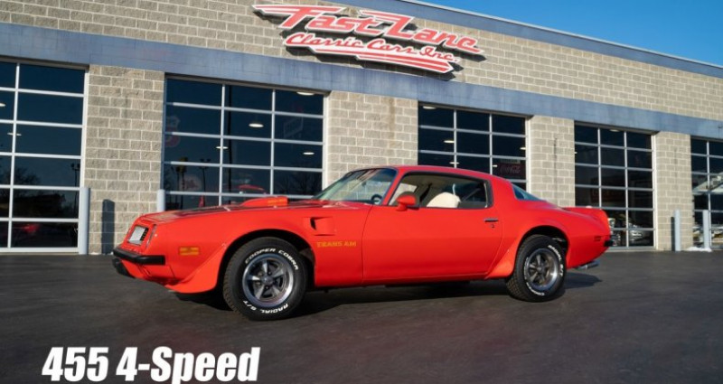 - Marque : Pontiac - Modèle : Trans Am - Année : 1975 - Couleur extérieure : Rouge Buccaneer - Couleur intérieure : Blanc et Noir - Type de carrosserie : Coupé - Transmission : Boîte manuelle 4 vitesses - Moteur : 455 C.I. V8 - Roues : 15 Pontiac Rally - Kilométrage : 62 216 miles. Provenance : Missouri. Disponibilité : environ 7 semaines, clés en main. 53 500 € tout compris (importation, taxes, procédure d'immatriculation). Annonce publiée le 19/12/2025