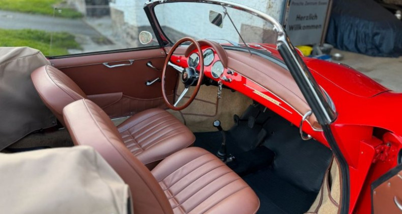 Porsche 356 BT5 Roadster Super 90 Digne héritier du Speedster, la version Roadster est particulièrement rare et recherchée (2600 exemplaires) et à ne pas confondre avec la version Cabriolet. 15/06/1960 Moteur 1600 cm3 90 cv (même type qu'à l'origine) Boite de vitesse manuelle à 4 rapports 93 000 kms Kardex Porsche Carrosserie Drauz Expertise disponible Non matching numbers et colors (Ivoire intérieur noir à l'origine) Boite de vitesse rénovée récemment Couleur extérieure : Rouge signal Couleur intérieure : Cognac et moquettes beige passepoilées Pays de livraison : USA (New York) Volant en bois VDM 3 branches Préparation intérieur : injecteur extracteur, désinfectant et détachant, traitement des cuirs Préparation carrosserie : Décontamination, polish, lustrant et pose d'une cire Nettoyage cryogénique du moteur (Le nettoyage cryogénique est écologique, non abrasif et sans eau. Il permet d’éliminer efficacement les salissures (graisses, peintures, résidus techniques…) tout en protégeant vos équipements ou vos structures) Les documents sont à consulter sur place, pas d'envoi Véhicule en dépôt vente Sous réserve d'erreurs dans la description Nous nous occupons des formalités administratives Visite sur rendez vous