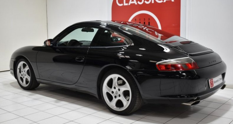 CONDUITE : à gauche CARTE GRISE : Normale NB PLACES : 4 NB CYL. : 6 à plat PNEUMATIQUES : Usure Av 30% + Ar neufs * GARANTIE 12 MOIS incluse * REPRISES et LIVRAISON possibles * Frais de mise à la route en sus : 690 € TTC (1/4 de carburant, passage contrôle technique, préparation intérieure et extérieure) * Service « carte grise » et « carte grise collection » (dossier FFVE inclus) PORSCHE 996 Carrera 3.6L (2002 - 2004) Origine Allemagne code (C00) Carnet PORSCHE d'origine Manuel utilisateur PORSCHE d'origine Matching number : moteur / châssis / boite (attestation PORSCHE France) Matching color extérieur « Schwarz L041» Matching color intérieur : « Schwarz » Double de clés d'origine Dossier de factures (total : 9.642 EUR.) Suivi centre PORSCHE et spécialistes Test PIWI Ok Factures depuis 2002 Pneumatiques avant PIRELLI PZero Pneumatiques arrière neufs à la livraison Etriers de freins coloris : « Schwarz » Disques de frein arrière + jeu de plaquettes arrière neufs à la livraison Grand service réalisé en 07/ 2024 à 113.842km auprès d'un spécialiste de la marque (facture 1.549 EUR.) : - vidange huile moteur MOTUL 5W40 - remplacement filtres (huile / air / pollen) - remplacement 6 bougies d'allumage - remplacement 6 bobines d'allumage - nettoyage des radiateurs - purge liquide de frein - contrôle sécurité général Options et équipements : 139 siège conducteur chauffant 340 siège passager chauffant 411 jantes Carrera 5 branches 476 PSM (PORSCHE Stability Manager) 490 Systéme audio 601 phares Litronic (xénon) 650 toit ouvrant 692 chargeur 6 cd 09991 Passage par le département PORSCHE Exclusive Sellerie en cuir micro-perforé coloris : « Schwarz » Volant à 3 branches en cuir Pommeau de vitesse en cuir avec insert type aluminium Instrumentation de bord VDO d'origine Horloge VDO d'origine Radio k7 PORSCHE Ordinateur de bord Vitres électriques Moquettes coloris « Schwarz » Sur tapis PORSCHE Roue de secours galette Trousse à outils Alarme Cric Historique du modèle : Afin de conserver son statut de « référence absolue » en matière de sportives, PORSCHE se doit à nouveau de faire évoluer sa célèbre 911. Au milieu des années 90, les clients exigent plus d'ergonomie, de confort et de facilité d'utilisation. Dans le même temps, en 1996 le vieux Flat 6 refroidi par air est arrivé au terme des évolutions possibles et le 3.6 de la 993 ne passera pas les nouvelles normes européennes en terme de bruit et de pollution. Il est temps de revoir la copie en profondeur et PORSCHE présente la 996, première 911 de la marque à adopter le refroidissement liquide. Plus sage, tant au niveau des lignes que de son caractère moteur, la 996 se définit comme une vraie GT et progresse énormément en terme d'habitabilité, d'ergonomie, et de facilité d'usage: grâce à l'électronique, il devient plus aisé de rouler fort malgré un Flat 6 toujours implanté en porte à faux arrière. De même, le nombre (peut être trop) important de pièces communes avec le Boxster permet de réduire fortement le coût d'entretien. C'est en 2002 que PORSCHE va révolutionner la 911 Targa et proposer une version conjuguant l'utile à l'esthétique. En plus d'un toit ouvrant panoramique en verre et d'une jalousie électrique la 996 Targa innove grâce à l'ouverture du hayon permettant le chargement des bagages directement par l'arrière. La 996 Targa ne sera proposée qu'en version 320 ch. 2 roues motrices (Carrera 2). Relativement peu appréciée des puristes, la 996 sera pourtant le plus gros succès commercial de PORSCHE, qui fera de la 996 la plus vendue de toute l'histoire de la 911. Carrosserie / Extérieur : Le modèle présenté ici est une PORSCHE 996 Carrera d'octobre 2002 dans son coloris « Schwarz L041 » d'origine (matching color). La peinture est aujourd'hui en très bon état de présentation, affichant une teinte homogène ainsi qu'une excellente brillance. Après un lustrage pro réalisé à l'orbitale par notre atelier, nous avons relevé quelques poussières sous peinture éparses, une petite griffure au sommet de l'aile arrière gauche et quelques petits coups. Nous avons relevé 3 petits éclats de peinture sur le toit ouvrant. Le pare-brise présente un léger gravillonnage. Les pare chocs sont parfaitement positionnés et en bon état, sans fissures ni cassures. Le toit ouvrant électrique (option 650) fonctionne parfaitement. Son étanchéité est excellente. L'aileron arrière électrique fonctionne parfaitement. Son soufflet ne présente aucun défaut. Cet exemplaire est équipé de l'option phares Litronic (xénon) avec buses lave phares (option 288). Les 4 jantes « Carrera » en 18 pouces présentent quelques légères traces de frottement sur les contours. Les pneumatiques PIRELLI PZero affichent une usure de 30% à l'avant. Les pneumatiques arrière seront remplacés à neuf en amont de la livraison. Cette 996 dispose de sa roue de secours galette d'origine, son cric et sa trousse à outils. Parmi les équipements et options Carrosserie / Extérieur intéressants dont cet exemplaire est doté, nous avons noté : le toit ouvrant électrique (option 650) et l'option phares Litronic (xénon). Habitacle : L'intérieur en cuir coloris «Schwarz» a conservé sa stricte configuration d'origine (Matching color) et apparaît en excellent état de présentation. Cet exemplaire est équipé de l'option sièges chauffants à réglages électriques. La sellerie en cuir micro-perforé coloris « Schwarz » est en bon état d'origine et affiche une patine d'usage homogène au niveau du siège conducteur, notamment au niveau des bourelets extérieurs. Les contre portes en simili-cuir assorti sont également en excellent état. Le tableau de bord et sa casquette en simili-cuir d'origine ne présentent aucun défaut. L'ensemble de l'instrumentation de bord VDO d'origine ainsi que l'horloge et les équipements de confort sont parfaitement fonctionnels, à l