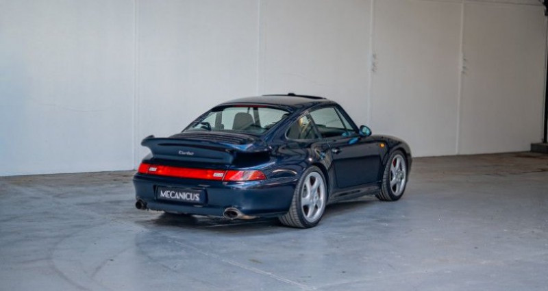 Porsche 911 COUPE (993) Turbo *Midnight Blue*, (Coupé), BLEU, 21cv, mise en circulation le 24-07-1995. couleur intérieur : NOIR, boîte de vitesse : manuelle OPTIONS ET EQUIPEMENTS : Kilométrage non garanti. La Porsche 911 type 993 Turbo que vous découvrez est un exemplaire d'origine allemande, livré le 24 juillet 1995 par le Centre Porsche de Stuttgart. Cette dernière a été configurée dans la teinte Midnight Blue (L39C) avec un intérieur tout en cuir noir. La version Turbo de la 993 disposait de nombreux équipements de série tels que la climatisation et les jantes Techno 18 pouces, entre autres. Notre exemplaire a aussi été équipé en option des sièges chauffants, du réservoir de carburant 92 litres ainsi que du toit ouvrant. La liste complète des options est visible ci-dessous. Quelques modifications ont été apportées à cette voiture pour agrémenter son comportement et les trajets à son bord. On retrouve : des suspensions de 993 Turbo S, une ligne d'échappement en inox ainsi que le PCM moderne d'origine Porsche, qui permet notamment de bénéficier d'Apple CarPlay tout en conservant un style conforme à l'origine. La voiture affiche 106 000 kilomètres au compteur, parcourus avec 7 propriétaires français suite à son importation en 1996. Son historique d'entretien est limpide et permet une parfaite traçabilité de l'évolution du kilométrage. Cette auto a toujours été suivie en Centre Porsche puis chez des spécialistes de la marque. Nous disposons de son carnet d'entretien original, d'un dossier de factures conséquent ainsi que du double de ses clés. L'embrayage a été remplacé il y a 5 000 kilomètres. Le dernier entretien effectué remonte au mois de février 2025. Notez que les quatre pneus, les plaquettes ainsi que les disques de frein avant seront remplacés pour la vente de la voiture. Ce collector vous attend, dans la version la plus désirable et performante de sa génération. Equipement optionnel : C00 -Origine Allemagne 139 - Siège chauffant, gauche 340 - Siège chauffant, droit 545 - Réservoir de carburant 92 litres 567 - Pare-brise teinté Haut 586 - Soutien lombaire, siège gauche 650 - Toit ouvrant Liste des entretiens : O6/1996 - Entretien - 7.650km - Porsche Fast Autos Montreuil O6/1997 - Entretien - 23.030km - Porsche Sonauto Levallois O9/1998 - Entretien - 41.297km - Porsche Sonauto Levallois O8/2001 - Montage suspensions 993 Turbo S - km - Centre Porsche Antibes O9/2000 - Entretien - 61.021km - Porsche Impérial S.A. Marseille 10/2002 - Entretien - 79.094km - Centre Porsche Antibes O1/1997 - Entretien - 92.290km - Type 911 Spécialiste Porsche O3/2014 - Entretien - 97.066km - CSA - Spécialiste Porsche O1/2016 - Entretien - 99.058km - 911 Montmartre - Spécialiste Porsche O7/2018 - Entretien - 100.133km - 911 Montmartre - Spécialiste Porsche O6/2020 - Entretien - 100.341km - 911 Montmartre - Spécialiste Porsche O5/2021 - Entretien - 101.675km - 911 Montmartre - Spécialiste Porsche O5/2021 - Remplacement de l'embrayage - 101.675km - 911 Montmartre - Spécialiste Porsche O6/2023 - Entretien - 103.281km - 911 Montmartre - Spécialiste Porsche O2/2025 - Entretien - 105.079km - 911 Montmartre - Spécialiste Porsche Le véhicule est couvert par un contrat de garantie Triomphe Héritage 12 mois avec plafond de 5 000€ et 15 000km. Extension de durée (24 ou 36 mois) et/ou de plafond (10 000€) possible. L'auto est visible à Paris ou sur le site de Mecanicus pour plus de photos. Nos prix s'entendent TVA et malus inclus, le coût de la carte grise reste à la charge de l'acheteur. Reprise et financement possibles. L'équipe MECANICUS Référence annonce : 130
