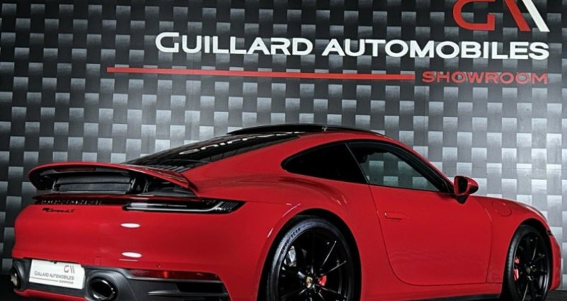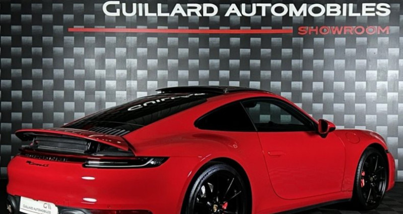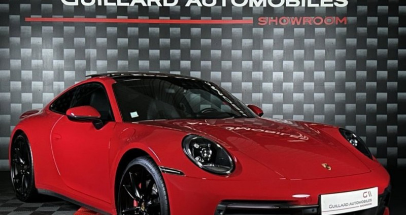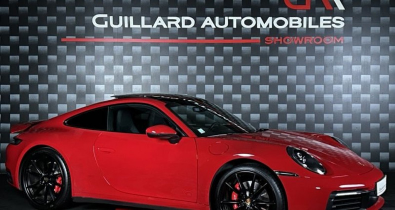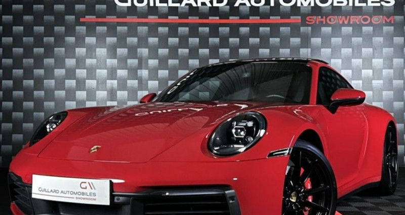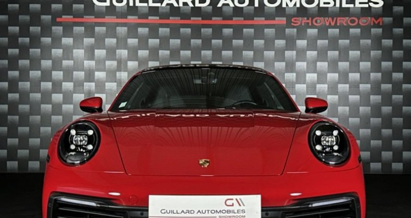 //// GUILLARD AUTOMOBILES VOUS PROPOSE A LA VENTE CETTE BELLE PORSCHE 992 CARRERA 4S 450ch PDK //// // 22488euros D'OPTIONS // -Mise en circulation : 14/08/2019 -Puissance fiscale : 34ch -Couleur extérieur : Rouge Carmin (2676euros) *Description du véhicule : -Intérieur tout cuir lisse noir (3408euros) -Sièges sport en cuir lisse noir semi-électriques -Ceintures de sécurité Rouge Bordeaux (444euros) -Sièges chauffants à l'avant (474euros) -Ecussons Porsche sur appui-têtes (228euros) -Volant sport GT en cuir noir multifonctions avec chauffage volant (468euros) -Radio CD commande au volant -Ordinateur de bord -Planche de bord en cuir lisse + panneaux de portes -Pack Sport Chrono (2244euros) -Régulateur de vitesse -Servotronic Plus -Porsche Active Safe -Allumage automatique des feux -Feux de route assistés -Détecteur de pluie -Climatisation automatique bizone -GPS couleur 16/9ème tactile -Prises USB -Lecteur de carte SIM -Lecteur de carte SD -Wi-Fi -Bluetooth audio -Connexion téléphone mains-libres Bluetooth -Apple CarPlay -Commande vocale -Vitres électriques -Rétroviseurs rabattables électriquement avec éclairage d'alentour (300euros) -Rétroviseurs intérieur et extérieurs anti-ébouissement avec capteur de pluie intégré (552euros) -Démarrage sans clé -Verrouillage des portes centralisé à distance -Boîte de vitesse automatique et séquentielle avec palettes au volant -5 modes de conduite ( Drive Mode ) ( Wet / Normal / Sport / Sport Plus / Individual ) -Fonction START & STOP -Accoudoir central -Inserts décoratifs alu -Eclairage d'ambiance (444euros) -Toit ouvrant panoramique électrique en verre (2268euros) -Ciel de pavillon noir -Pare-brise teinté dégradé (114euros) -Vitrage surteinté à l'arrière (552euros) -Seuils de portes en alu avec inscription 911 Carrera 4S -Tapis de sol (180euros) -Assistance de parking avant et arrière avec caméra de recul (1608euros) -Phares à LED avec fonction Porsche Dynamic Light System Plus (PDLS +) (2616euros) -Jantes alu 20 + 21 en Noir (finition satiné) (1020euros) -Etriers de freins rouges avec inscription PORSCHE -Suspension pilotée -Logo PORSCHE en noir (finition brillante) (264euros) -Système d'échappement sport avec sortie d'échappement sport en noir(finition brillante) (2628euros) Entretien suivi à jour (Carnet d'entretien complet PORSCHE). Véhicule en excellent état. Véhicule révisé et garanti 12 mois (Extension possible de la garantie 24 mois). // REPRISE POSSIBLE DE VOTRE VEHICULE // // TOUS NOS VEHICULES SONT VISIBLES SUR RENDEZ-VOUS A PLEUMELEUC // SARL GUILLARD AUTOMOBILES 6 RUE LAENNEC 35137 PLEUMELEUC // HORAIRES D'OUVERTURE SEULEMENT SUR RENDEZ-VOUS //: -DU LUNDI au VENDREDI : 9h00-12h00 14h00-18h00 -LE SAMEDI : 9h00-12h00