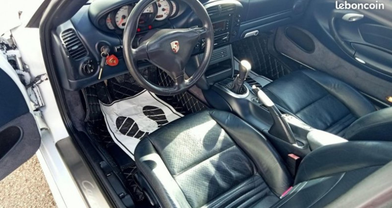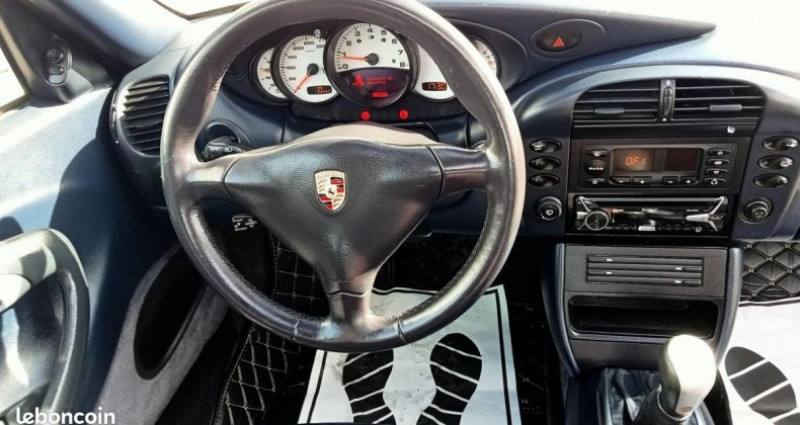 Porsche 911 CARRERA 996 Coupe 3.6i cabriolet, blanc, 23 cv, 2 portes, couleur intérieure : noir, première mise en circulation le 07/02/2003. Porsche carrera 996 facelift en 997. Véhicule vendu dans l'état, sans garantie. Véhicule en dépot vente Pour toute information complémentaire, n'hésitez pas à nous contacter. 2 places OPTIONS ET EQUIPEMENTS : Extérieur : - rétroviseurs électriques - vitres électriques - châssis sport Intérieur et confort : - accoudoir central - ordinateur de bord - volant réglable - volant sport - climatisation automatique - intérieur cuir Sécurité : - direction assistée - rétroviseurs dégivrants - ABS - alarme - anti-démarrage - phares antibrouillard - suspension sport Autres équipements et informations : - consommation extra urbaine : 8,10 litres - consommation urbaine : 16,10 litres - consommation mixte : 11,10 litres - puissance réelle : 320 ch - émission CO2 : 269 g/km - Puissance kilowatt : 235 kw - roue de secours - airbag conducteur - Vitres arrières électriques - filtre à pollen - réglages du volant : profondeur - 3eme feu stop - Accoudoir central AV et rangement - Aileron AR - Antenne integree dans le pare-brise - Appuis-tete AV - Arceaux automatiques en cas de retournement - Boite a gants verrouillable - Bouclier avec entrees d'air pour refroidissement - Buses de lave-glace chauffantes - Capote entierement electrique avec lunette AR rigide et chauffante et Hard Top couleur carrosserie s - Ceintures a enrouleur 3 points - Cle incluant l'ouverture a distance de la capote - Cles avec logo Porsche - incluant l'ouverture des portes et des fenetres - Commandes electriques d'ouverture des coffres AV et AR - Compteur vitesse - Eclairage d'ambiance des panneaux de portes - de la console centrale et du cockpit AV - Essuie-glace a 2 vitesses - intermittent et continu - Feux de brouillard AR - Miroirs de courtoisie eclaires avec languette pare-soleil - Protection anti-chocs laterale ''POSIP'' (Porsche Side Impact Protection) - Protection anti-encastrement laterale dans les portieres - Radio cassette CR 22 - Reglage electrique du dossier des sieges AR - Sieges AR rabattables offrant un coffre supplementaire - Sieges garnis cuir partiel - Vide poches cote portieres en cuir souple - Vitres en verre athermique teinte degrade - Echappement sport (sortie d'echappement standard) - Pare-soleil (gauche et droite) cuir couleur interieure et lampe de lecture integree cote passager - Sellerie cuir Référence annonce : le5i0gk