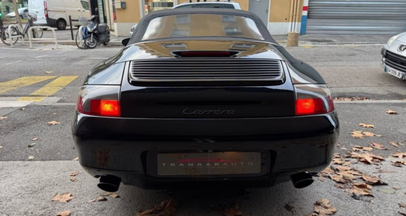 Cylindrée : 3387 cm3 EQUIPEMENTS Rétroviseurs extérieurs à réglage manuel Sièges avant chauffants Sièges en cuir Porsche 911 Carrera Cabriolet 996 ? 3.4L ? 300 CV Capote électrique, Sellerie cuir, Jantes alliage 18, Climatisation automatique, Ordinateur de bord, Sièges électriques, Siège chauffants, Système audio radio, Rétroviseurs électriques, 4 Vitres électriques, Volant sport, Volant réglable en hauteur et en profondeur, Fermeture centralisée, Feux antibrouillard, Pack intérieur cuir? Entretiens à jour. -Véhicule Français - -Double des clés - -Entretien à jour - Informations pratiques & services Véhicule visible uniquement sur rendez-vous dans notre agence TRANSAKAUTO Nice Est (06100). (Reportage photo complet disponible sur simple demande.) Garantie disponible de 6 à 36 mois, en option et moyennant supplément.Financement personnalisé et livraison possible partout en France. Tarif affiché hors frais d'agence et de carte grise. Bien que nous apportions le plus grand soin à la rédaction de nos annonces, des erreurs peuvent s?y glisser. Nous vous invitons à nous contacter pour toute confirmation ou question complémentaire. Transakauto, réseau national de courtage automobile pour particuliers, vous accompagne dans la vente ou l?achat de votre véhicule, en prenant en charge l?ensemble des démarches administratives et sécurisant chaque étape de la transaction. AUTRES EQUIPEMENTS - Puissance reelle : 300 - Nb rapports : 6 - Nb places : 4 - Vitres electriques - Airbag conducteur - Climatisation : manuelle - Dimension des jantes : 18 - Ordinateur de bord - Siege chauffant cond - Sieges electriques - Abs - Consommation extraurbaine : 8.50 - Consommation mixte : 11.80 - Consommation urbaine : 17.20