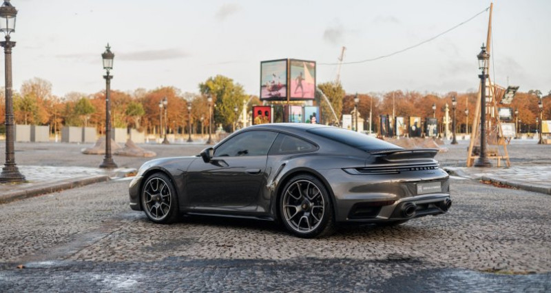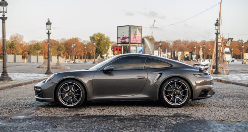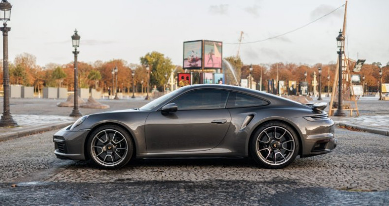 Héritage Automobiles vous propose à la vente une Porsche 992 Turbo S. INFORMATIONS 17/12/2020 36.700 kilomètres Coloris EXTÉRIEUR : Gris quartz métallisé (M7S) Coloris INTÉRIEUR : Noir Très belle configuration Parfait état Origine Porsche Levallois Deuxième main française Carnet, notices, double des clés, factures OPTIONS 0P9 - Système d’échappement sport en noir 1LX - Porsche ceramic composite brake ( PCCB) - Etriers de frein peints en noir 1N3 - Servotronic Plus 1XR - Volant Sport GT multifonction et chauffant (Race-Tex) 2UH - Système de levage de l’essieu avant (LIFT) 3FE - Toit coulissant / relevable électrique en verre 46U - Jantes 911 turbo S Exclusive design 20/21 pouces 4A3 - Sièges chauffants à l’avant 403 - Ventilation des sièges avant 4F2 - Accès confort 5XK - Pare soleil en Race-Tex 6E2 - Ecusson Porsche sur l’accoudoir de la console centrale 6FU - Base des rétroviseurs extérieurs en couleur carrosserie 7M8 - Baguette de seuil de porte en carbone, illuminés 7Y1 - Assistance angles morts 8JU - Phares matriciels en LED teintés avec Porsche Dynamic System Plus (PDLS+) 8T3 - Régulateur de vitesse adaptatif 9VJ - Burmester High-END Surround Sound System ABW - Désignation du modèle peint en couleur extérieure AFA - Clé du véhicule peinte KA6 - Assistance parking avant et arrière avec caméra de recul et vue 360° QE1 - Pack rangement QJ4 - Contour des vitres latérales en Noir (finition brillante) QQ2 - Pack luminosité VK1 - Entrée d’air latérales peintes en couleur carrosserie MODIFICATIONS - Apple Carplay (étendu sur tout l’écran) - Inserts en carbone mat sur la console centrale, le volant ainsi que les portières - Ajout feux arrière exclusive design - Chargeur de téléphone sans fil - Dispositif pour Coyote - Vitres teintées ENTRETIENS - 14/11/2023 - 18.605 km - Porsche Paris - 24/09/2025 - 36.570 km - Porsche Courbevoie Véhicule visible avec son dossier uniquement sur rendez-vous à Neuilly-sur-Seine. N’hésitez pas à nous contacter pour de plus amples informations. *SOUS RESERVE D’ERREURS DE NOTRE PART*