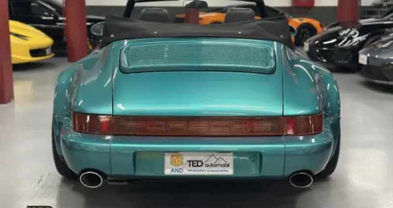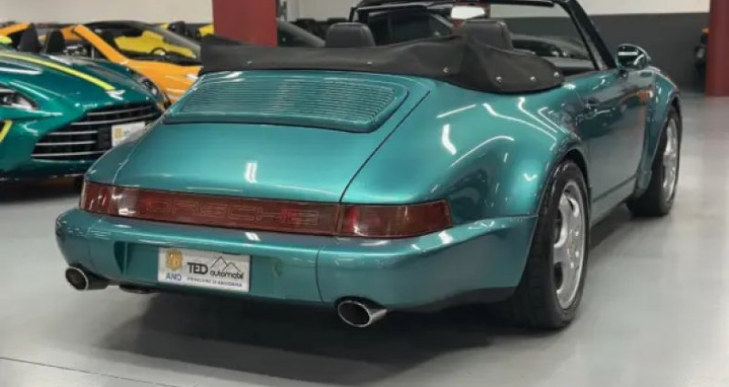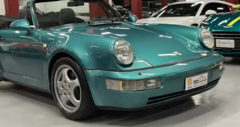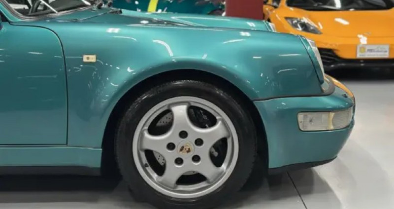 Porsche 911 964 Carrera 2 Cabriolet Turbo Look Wimbledon Green Extres Turbolook d'origen - Color original Wimbledon Green - Canvi manual - Interior d'origen - Seients de cuir - Seients elèctrics - Capota elèctrica - Navegador GPS - Pinses de fre negres - Sistema Hi-Fi Radio Porsche moderna - etc... Vehicle en estat de colecció. La liste des extras est uniquement indicative, elle peut être incomplète ou erronée.