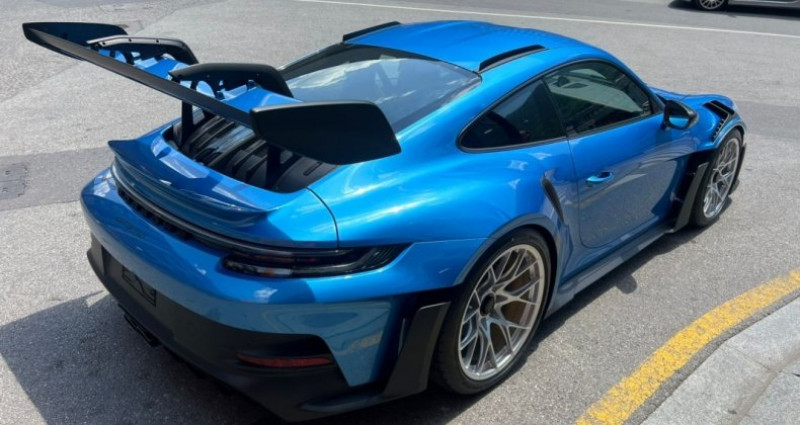 Porsche 911 - 992 GT3 RS - Porsche 911 GT3 RS 525 ch - Système de freins en céramique Porsche Ceramic Composite Brake (PCCB) avec étriers de frein de couleur jaune - Système de levage de l'essieu avant - Pack Club Sport - Sièges baquets intégraux (Bucket) en fibre de carbone - Pack intérieur carbone (satiné) - Moulures triangulaires pour les vitres en carbone - Moulures supérieures des rétroviseurs extérieurs en carbone - Suspension active PASM - Jantes légères en aluminium forgé GT3 RS de 20/21 pouces - Phares principaux LED en couleur Noir avec Porsche Dynamic Light System (PDLS) - Feux arrière Exclusive Design - Échappement sport - Choix de couleur personnalisé Paint to Sample en bleu métallisé - Pack de sellerie intérieure avec coutures décoratives et broderie de couleur contrastée - Ceintures de sécurité en couleur Jaune Racing - Fond de compte-tours en couleur Jaune Racing - Fond du chronomètre Sport Chrono du tableau de bord en couleur Jaune Racing - Seuils de porte en Carbone (mat) illuminés - Tapis de sol en carbone avec bordure en cuir - Caméra de recul - Couvercle du compartiment de rangement Race-Tex avec écusson Porsche - Rétroviseurs anti-éblouissement (intérieurs et extérieurs) avec capteur de pluie - Réservoir de Carburant de 90 litres - Intérieur avec de nombreux éléments en cuir / Race-Tex de couleur Noir avec couleur contrastée : Argent GT - Suppression du logo décoratif GT3RS sur le côté - Volant sport GT3 RS en Race Tex - Intégration pour smartphone - Alarme antivol - Localisateur de véhicule PVTS - Film de protection transparent sur l'extérieur du véhicule - Garantie officielle - 42.000 ? en options -*Nous avons été prudents en décrivant les caractéristiques de ce véhicule, bien que celles-ci ne constituent pas une garantie pour les erreurs d'écriture et la transmission de données. Extras - ABS Airbag conductor Airbag passatger Alarma Bluetooth Càmara visió posterior Connexió Internet Connexió MP3-iPod Connexió telèfon Control Estabilitat Control Tracció Cruise control Direcció assistida GPS Kit carrosseria Llandes al·liatge Llums adaptatives Llums de dia Llums Led Pintura metalitzada Retrovisors elèctrics Seients esportius Sensors llums Sensors parking Sensors pluja Start-Stop Tanca centralitzada USB Vidres elèctrics