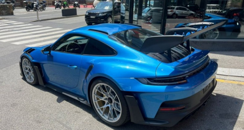 Porsche 911 - 992 GT3 RS - Porsche 911 GT3 RS 525 ch - Système de freins en céramique Porsche Ceramic Composite Brake (PCCB) avec étriers de frein de couleur jaune - Système de levage de l'essieu avant - Pack Club Sport - Sièges baquets intégraux (Bucket) en fibre de carbone - Pack intérieur carbone (satiné) - Moulures triangulaires pour les vitres en carbone - Moulures supérieures des rétroviseurs extérieurs en carbone - Suspension active PASM - Jantes légères en aluminium forgé GT3 RS de 20/21 pouces - Phares principaux LED en couleur Noir avec Porsche Dynamic Light System (PDLS) - Feux arrière Exclusive Design - Échappement sport - Choix de couleur personnalisé Paint to Sample en bleu métallisé - Pack de sellerie intérieure avec coutures décoratives et broderie de couleur contrastée - Ceintures de sécurité en couleur Jaune Racing - Fond de compte-tours en couleur Jaune Racing - Fond du chronomètre Sport Chrono du tableau de bord en couleur Jaune Racing - Seuils de porte en Carbone (mat) illuminés - Tapis de sol en carbone avec bordure en cuir - Caméra de recul - Couvercle du compartiment de rangement Race-Tex avec écusson Porsche - Rétroviseurs anti-éblouissement (intérieurs et extérieurs) avec capteur de pluie - Réservoir de Carburant de 90 litres - Intérieur avec de nombreux éléments en cuir / Race-Tex de couleur Noir avec couleur contrastée : Argent GT - Suppression du logo décoratif GT3RS sur le côté - Volant sport GT3 RS en Race Tex - Intégration pour smartphone - Alarme antivol - Localisateur de véhicule PVTS - Film de protection transparent sur l'extérieur du véhicule - Garantie officielle - 42.000 ? en options -*Nous avons été prudents en décrivant les caractéristiques de ce véhicule, bien que celles-ci ne constituent pas une garantie pour les erreurs d'écriture et la transmission de données. Extras - ABS Airbag conductor Airbag passatger Alarma Bluetooth Càmara visió posterior Connexió Internet Connexió MP3-iPod Connexió telèfon Control Estabilitat Control Tracció Cruise control Direcció assistida GPS Kit carrosseria Llandes al·liatge Llums adaptatives Llums de dia Llums Led Pintura metalitzada Retrovisors elèctrics Seients esportius Sensors llums Sensors parking Sensors pluja Start-Stop Tanca centralitzada USB Vidres elèctrics
