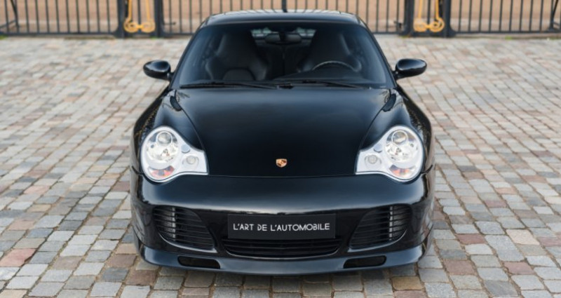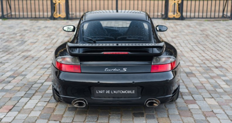 OPTIONS ============== XAF Aerokit Turbo 342 Sièges chauffants 981 Intérieur tout cuir 635 Assistance parking C00 Version Allemagne 454 Régulateur de vitesse 650 Toit ouvrant électrique XCZ Levier de vitesses sport XRC Jantes 18 Sport Techno XMZ Console centrale en cuir 567 Pare-brise teinté dégradé XRN Elargisseurs de voie 17mm 09991 Options Porsche Exclusive 680 BOSE Surround Sound System XPA Volant Sport 3 branches en cuir XSB Dossier des sièges sport en cuir XKL Haut-parleurs recouverts de cuir XNN Buses d’aération centrales en cuir XSC Ecusson Porsche sur les appuis-tête 476 Porsche Stability Management (PSM) XTA Commandes de climatisation en cuir XD9 Jantes peintes en couleur carrosserie X71 Fonds de compteur couleur aluminum 480 Boîte de vitesses manuelle à 6 rapports 450 Porsche Ceramic Composite Brake (PCCB) X98 Poignée de frein à main en cuir/aluminium XNS Habillage de la colonne de direction en cuir XNU Bande de garniture du tableau de bord en cuir X97 Pommeau du levier de vitesses en cuir/aluminum XNG Partie inférieure du cache des instruments de bord en cuir INFORMATIONS ============== Troisième main Test Piwis disponible Suivi exclusif Porsche Désirable boîte manuelle Révisée en décembre 2025 Origine Centre Porsche Francfort Superbe configuration avec l'aérokit Rare version Turbo S, 600 exemplaires au monde en coupé Carnet d’entretien, notices, triple de clés, certificat de conformité Suivi et entretien :Le 27/09/2005 à 41 kms - livraison par le Centre Porsche Francfort Le 06/09/2007 à 12 091 kms par le Centre Porsche Francfort Le 25/02/2011 à 39 930 kms par le Centre Porsche Offenburg Le 13/12/2012 à 59 984 kms par le Centre Porsche Hambourg Le 09/06/2015 à 65 975 kms par le Centre Porsche Würzburg Le 22/08/2019 à 66 903 kms par le Centre Porsche Saarland Le 03/12/2025 à 73 825 kms par le Centre Porsche Paris La DéfenseVoici une élégante et rare Porsche 996 Turbo S dans une superbe configuration Noir Basalte avec les jantes 18 Sport Techno polies vernies en couleur carrosserie et l'Aerokit Turbo convoité. Dans un très bel état et ayant parcouru 74 000 kms, cette 911 est une troisième main, elle sort tout juste de révision. Exclusivement suivie dans le réseau Porsche depuis l'origine, cette auto a été livrée neuve par la concession de Francfort. Nous disposons de son carnet, de ses notices, de son test Piwis ainsi que de son certificat de conformité. L'auto est de plus largement avantagée par sa boîte de vitesses manuelle à 6 rapports, et par de nombreuses options en cuir à l'intérieur. Elle vient bien entendu avec une panoplie d'équipements conséquente propre à la Turbo S, avec en premier lieu les freins céramiques PCCB mais aussi le système audio BOSE, le toit ouvrant, les sièges chauffants, le régulateur de vitesse ou encore l'assistance parking, Présentée au début des années 2000 dans la lignée de la 996 Turbo, la Porsche 996 Turbo S s'inscrit alors comme l’aboutissement ultime de cette génération : vitrine technologique et sportive de la marque, la Turbo S combine élégance discrète et performances de premier ordre. La génération des 996 Turbo opte pour une ligne fluide et de vraies évolutions mécaniques en marquant la fin du refroidissement par air qu'on trouvait sur la 993 Turbo. Elle est proposée à la clientèle Porsche en version Tiptronic, mais également en boîte manuelle.Le bloc moteur Metzger utilisé est issu de la fabuleuse GT1. Ce 6 cylindres à plat de 3 600 cm3 développe sur la Turbo S une puissance de 450 ch, et un couple de 620 Nm disponible sur un large panel du compte-tours, grâce au pack X50 monté de série. Le 0 à 100 km/h est expédié en 4 secondes et la vitesse maximale est établie à 307 km/h. Avec une production de seulement 600 exemplaires, la 996 Turbo S Coupe peut aujourd’hui être considérée comme l’une des 911 modernes les plus désirables.INFORMATIONS IN ENGLISHThird hand Piwis Test available Serviced in December 2025 Superb spec with the Aerokit Desirable manual transmission Exclusively serviced by Porsche Delivered by Porsche Centre Frankfurt Service book, manuals, triple keys, certificate of conformity Rare Turbo S version, only 600 examples worldwide in coupeService history:On 09/27/2005 at 41 km - delivered by Porsche Centre Frankfurt On 09/06/2007 at 12,091 km by Porsche Centre Frankfurt On 02/25/2011 at 39,930 km by Porsche Centre Offenburg On 12/13/2012 at 59,984 km by Porsche Centre Hamburg On 06/09/2015 at 65,975 km by Porsche Centre Würzburg On 09/22/2019 at 66,903 km by Porsche Centre Saarland On 12/03/2025 at 73,825 km by Porsche Centre Paris La DéfenseHere is an elegant and rare Porsche 996 Turbo S in a superb Basalt Black configuration with 18 Sport Techno wheels painted in body color & polished, coming as well with the coveted Aerokit Turbo. In very good condition and having covered 74,000 km, this 911 is a third-owner car and has just been serviced. Exclusively serviced within the Porsche network since new, this car was delivered new by the Frankfurt dealership. We have its service book, manuals, Piwis test report, and certificate of conformity.The car is further enhanced by its 6-speed manual transmission and numerous leather interior options. It naturally comes with a substantial array of equipment specific to the Turbo S, most notably the PCCB ceramic brakes, as well as the BOSE Surround Sound System, sunroof, heated seats, cruise control, and parking assist among others.Introduced in the early 2000s as the successor to the 996 Turbo, the Porsche 996 Turbo S emerged as the ultimate culmination of this generation: a technological and sporting showcase for the brand, the Turbo S combines understated elegance with top-tier performance. The 996 Turbo generation opted for a fluid design and significant mechanical advancements, marking the end of the air-cooling system found in the 993 Turbo. It is available to Porsche customers in a 