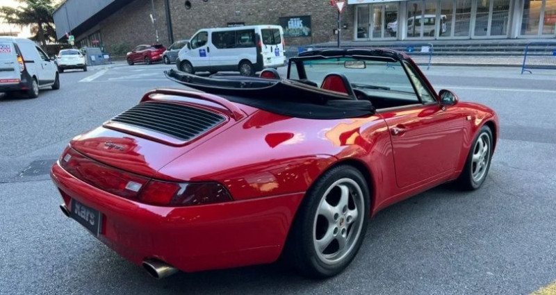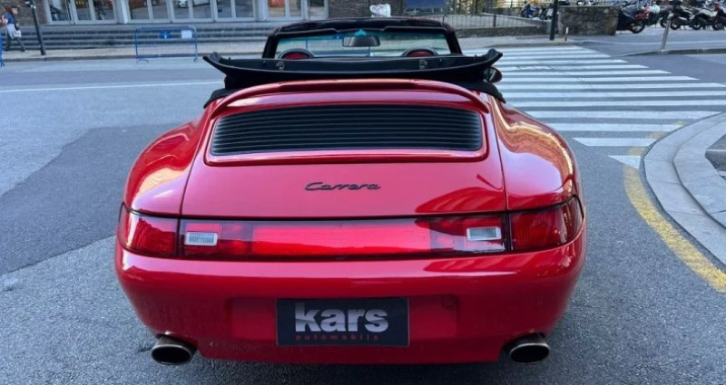 Porsche 911-993 Carrera Cabrio 272 CV. Transmission automatique - 12 mois de garantie - Véhicule en excellent état de conservation - Sièges avant avec réglage électrique, chauffants, habillés en cuir avec la partie arrière peinte dans la couleur de la carrosserie - Capote de couleur noire avec ouverture et fermeture électrique - Jantes en alliage de 17 pouces - Climatisation - Rétroviseurs à réglage électrique - Volant en cuir avec commandes de changement - Airbag avant pour conducteur - Système audio Sony - Phares au xénon avec antibrouillards - Troisième feu de freinage arrière intégré dans le spoiler - Aileron arrière avec déploiement électrique - Système de lavage des phares avant - Verrouillage centralisé - Système d'alarme d'origine - Disponible dans notre showroom. *Nous avons été attentifs à la description des caractéristiques de ce véhicule, mais elles ne représentent pas une garantie en cas d'erreurs d'écriture et de transmission de données.