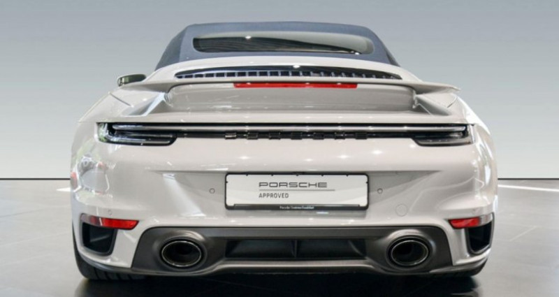 ??Garantie 12 mois Porsche approved 1er main Malus pour la France 11.400€ • Transmission : Automatique • Technologie : Transmission intégrale, ordinateur de bord, différentiel à glissement limité, système d'amortissement adaptatif, système Start-Stop, échappement sport, palettes au volant • Systèmes d'assistance à la conduite : Reconnaissance des panneaux de signalisation, détecteur de pluie, assistant feux de route, capteur de luminosité, assistance au freinage d'urgence, aide au démarrage en côte, assistance au maintien de voie, alerte de distance/collision, régulateur de vitesse adaptatif • Confort : Climatisation, climatisation automatique, direction assistée, verrouillage centralisé, vitres électriques, sièges chauffants, rétroviseurs extérieurs électriques, régulateur de vitesse, aide au stationnement, volant multifonctions, accès et démarrage sans clé, sièges électriques, filtre d'habitacle, sièges sport, aide au stationnement avant et arrière, toit décapotable électrique, climatisation automatique multizone, accès sans clé, sièges à mémoire, volant en cuir, climatisation automatique bizone, verrouillage centralisé à distance • Visibilité : Réglage de l'assiette des phares, phares adaptatifs, vitres teintées, rétroviseurs extérieurs chauffants, phares à LED, feux arrière à LED, caméra de recul, feux de jour à LED • Sécurité : ABS, airbag passager Antidémarrage, airbags latéraux, alarme, ESP, antipatinage, système de surveillance de la pression des pneus, airbag de tête, fixations ISOFIX pour sièges enfant, siège passager ISOFIX • Divertissement : système de navigation, système audio, pack communication, radio, pré-équipement téléphone, port USB, MP3, Bose, Bluetooth, système mains libres, Apple CarPlay, commande vocale, DAB, Wi-Fi, écran tactile • Autres : pot catalytique, jantes alliage, suspension sport, frein de stationnement électrique, volant chauffant, déflecteur d’air, aileron Équipements en option • (0P9) Système d’échappement sport, sorties d’échappement noires • (2TG) Sièges sport Plus : dossiers et garnitures en cuir • (46P) Jantes alliage avant/arrière : 9x20 / 11,5x21 (jantes 911 Turbo S) • (4F2) Accès confort (déverrouillage des portes sans clé) • (4GP) Pare-brise avec filtre à bande supérieur • (8T3) Régulateur de vitesse adaptatif • (KQ2) Inscription Porsche peinte • (QE1) Pack rangement • (VK2) Enjoliveurs d'aérations latérales peints