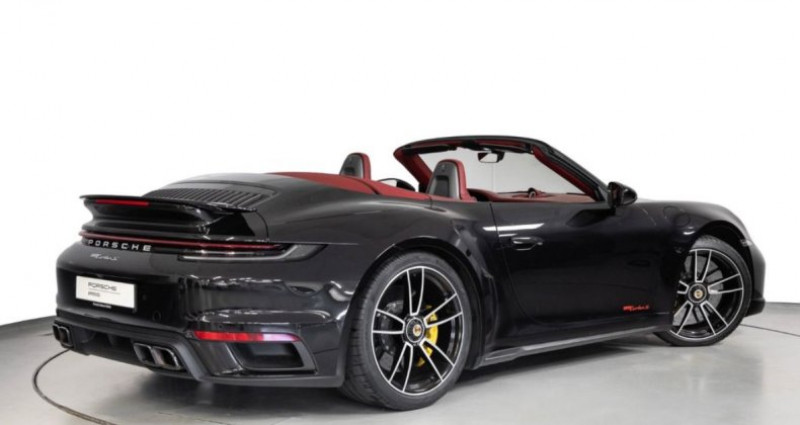??Garantie 12 mois Porsche approved 2e main Malus pour la France 11.400€ Équipements optionnels • Assistance au maintien de voie • Reconnaissance des panneaux de signalisation • Caméra avant • Pare-brise teinté • Régulateur de vitesse adaptatif • HomeLink (ouverture de porte de garage) • Jantes alliage avant/arrière : 9x20 / 11,5x21 (jantes 911 Turbo S) • Volant chauffant (Sport / Alcantara, 3 branches) avec fonction de changement de vitesse • Système de levage de l'essieu avant • Peinture métallisée • Radio numérique DAB+ • Direction assistée Plus asservie à la vitesse • Suspension sport à contrôle électronique (PASM) • Système de suivi du véhicule Plus (PVTS Plus) Équipements de série • Sièges sport adaptatifs avec réglage électrique 18 positions et fonction mémoire • Airbags conducteur et passager • Filtre à charbon actif (filtre anti-odeurs) • Transmission intégrale • Rétroviseurs extérieurs rabattables électriquement • Rétroviseurs extérieurs réglables et chauffants (des deux côtés) • Clignotants à LED • Décapotable • Connect Plus (Bluetooth, Apple CarPlay, Wi-Fi, système de géolocalisation) • Alarme antivol avec surveillance intérieure • Compte-tours • Allumage automatique des phares • Aide au démarrage en côte • Système d'alerte de collision avec freinage d'urgence automatique et détection des piétons • Aide au stationnement avant et arrière avec caméra de recul • Porsche Dynamic Chassis Control (PDCC) • Vitres électriques • Caméra avant • Boîte de vitesses à double embrayage à 8 rapports (PDK) • Boîte de vitesses à double embrayage à 8 rapports (PDK) • Porte-gobelets • Feux arrière à LED • Lunette arrière chauffante • Aileron arrière • Différentiel autobloquant électronique • Inserts décoratifs : Tableau de bord en fibre de carbone • Pack intérieur : Fibre de carbone • Fixations Isofix pour siège enfant sur le siège passager avant • Carrosserie : Coupé • Démarrage sans clé • Crochets porte-manteaux sur les sièges en cuir Dossiers • Climatisation automatique bizone • Airbags de tête, Porsche Side Impact Protection System (POSIP) • Airbags frontaux tête et épaules (airbags thorax) • Phares Matrix LED avec Porsche Dynamic Light System Plus (PDLS+) • Console centrale, inserts avant en fibre de carbone • Moteur 3,8 L 478 kW turbo avec pot catalytique • Moteur 3,8 L 478 kW turbo avec pot catalytique • Frein de stationnement électrique • Porsche Active Suspension Management (PASM) • Porsche Communication Management (PCM) avec module de navigation en ligne • Porsche Stability Management (PSM) • Porsche Torque Vectoring Plus (PTV Plus) • Porsche Traction Management (PTM) • Enjoliveurs de roues avec écusson Porsche coloré • Système de surveillance de la pression des pneus • Caméra de recul • Faibles émissions selon la norme Euro 6d • Bas de caisse peints • Puissance électromécanique Direction assistée • Sièges avant chauffants • Système audio BOSE • Bouton Sport • Pack Sport Chrono • Quatre sorties d'échappement noires • Système Start/Stop • Feux de jour à LED • Turbo • Capote électrique • Vitres teintées • Quatre roues directrices • Antidémarrage • Déflecteur d'air électrique